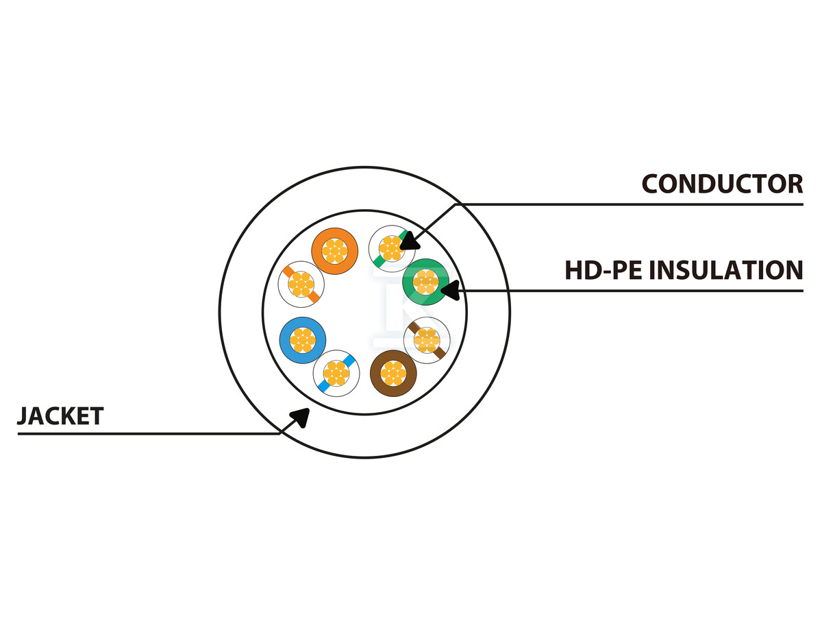 Кабель відповідає вимогам норм ANSI/TIA/EIA-568-B та ISO/IEC 11801 класу D, що гарантує його сумісність з більшістю мережевих пристроїв, доступних на ринку – роутерами, комутаторами або мережевими картами. Червоний колір полегшує ідентифікацію кабелю в щільно упакованих інсталяціях. Виготовлений з матеріалів, що забезпечують довговічність та стійкість до механічних пошкоджень. Зовнішній діаметр кабелю становить близько 4,8 мм, а товщина дроту – 26AWG (7 x 0,15 мм).
