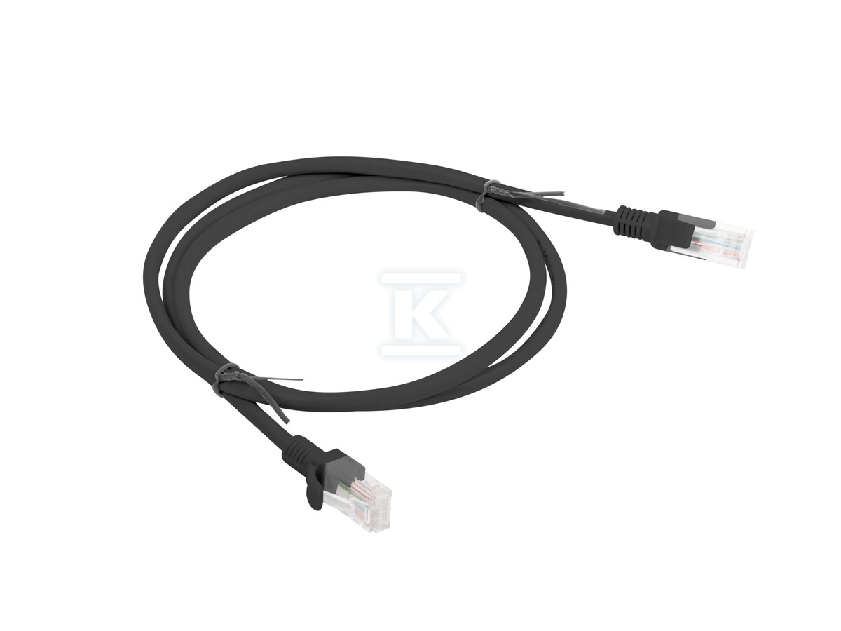 Патч-корд виготовлений з провідників CCA (Copper Clad Aluminum) товщиною 26AWG (7 x 0,15 мм), що забезпечує хорошу провідність та гнучкість. Оболонка з PVC захищає провідники від механічних пошкоджень. Відсутність екранування (U/UTP) робить кабель простим у встановленні та обслуговуванні. Зовнішній діаметр кабелю становить 4,8 мм (+/- 0,2 мм). Кабель має чорний колір (RAL9004). Працює з частотою до 100 МГц і пропонує пропускну здатність до 1 Гбіт/с.