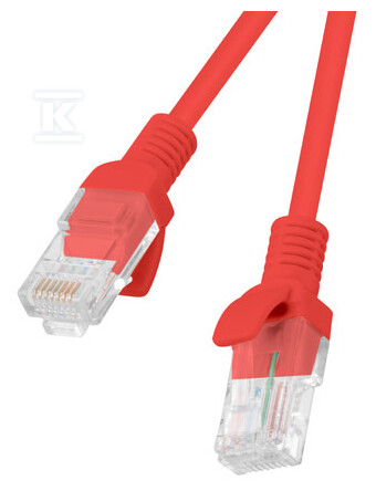 Патч-корд характеризується відсутністю екранування (U/UTP), що є типовим для внутрішніх інсталяцій, де рівень перешкод обмежений. Товщина провідників 26AWG (7 x 0,15 мм) та зовнішній діаметр 4,8 мм забезпечують відповідну гнучкість і легкість прокладання кабелю. Провід дозволяє передавати дані зі швидкістю до 1 Гбіт/с при частоті до 100 МГц. Червоний колір полегшує ідентифікацію кабелю в інсталяції.
