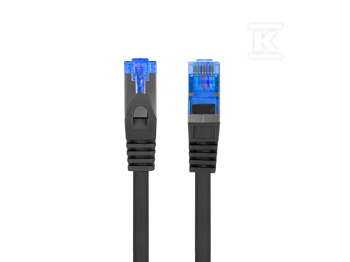 Патчкорд Lanberg виготовлений з високоякісних провідників CCA (мідь, покрита алюмінієм) і має подвійне екранування S/FTP – як обплетення, так і фольга навколо кожної пари провідників. Така конструкція ефективно захищає сигнал від електромагнітних (EMI) і радіочастотних (RFI) перешкод, гарантуючи стабільне з'єднання навіть у середовищах з високою інтенсивністю перешкод. Оболонка LSZH (Low Smoke Zero Halogen) мінімізує викиди токсичних газів у разі пожежі, підвищуючи безпеку інсталяції. Кабель має довжину 2 метри та діаметр 6,0 мм, а його чорний колір полегшує ідентифікацію в кабельному господарстві.
