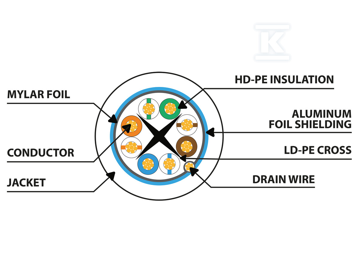 Патчкорд виготовлений з високоякісних провідників CCA (мідь, покрита алюмінієм) і має екранування фольгою (F/UTP), що мінімізує електромагнітні перешкоди та забезпечує стабільність сигналу. Завдяки цьому передача даних більш стійка до інтерференції, а мережа працює плавно та без проблем. Застосування екранування FTP особливо важливе в середовищах з високою інтенсивністю перешкод, таких як центри обробки даних або промислові приміщення.