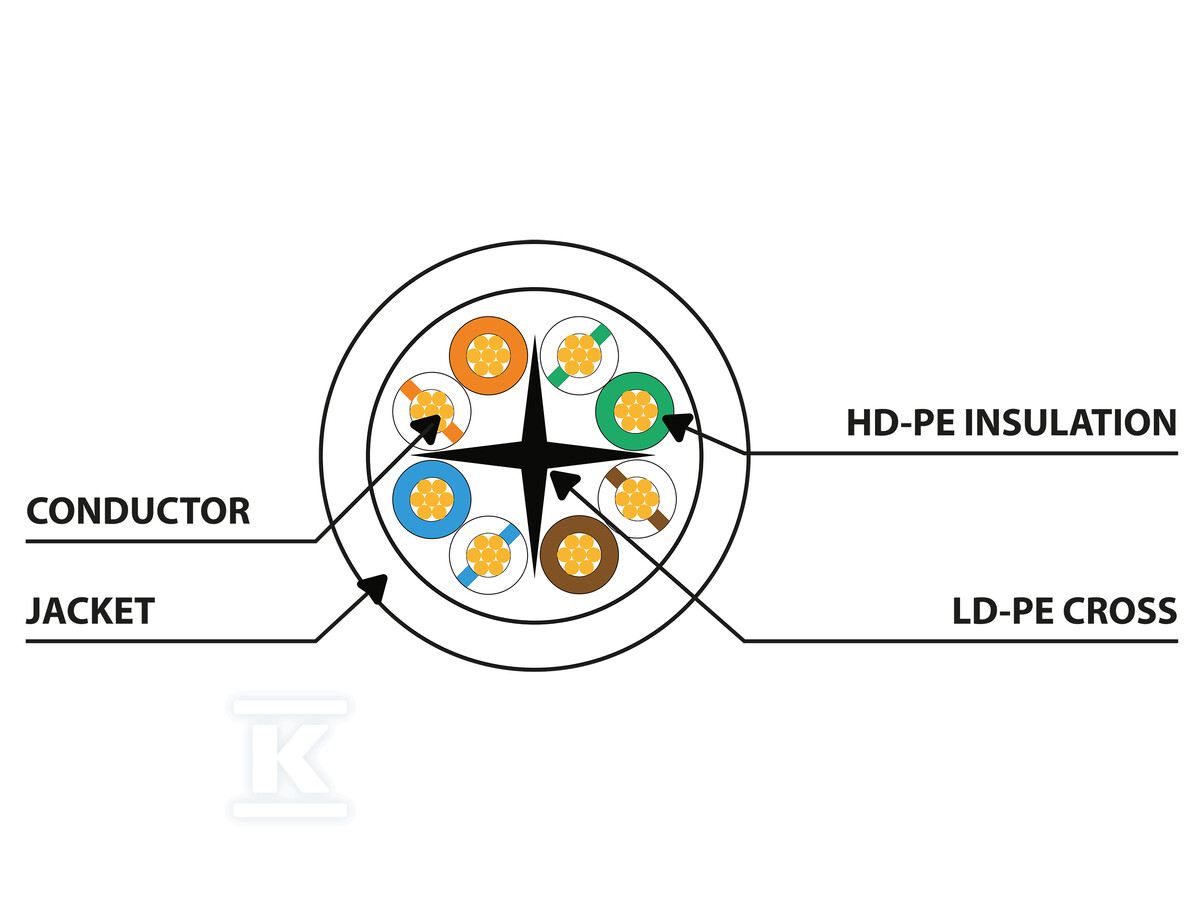 - Категорія 6: Забезпечує пропускну здатність до 10 Гбіт/с і частоту роботи до 250 МГц, що дозволяє швидко передавати дані.