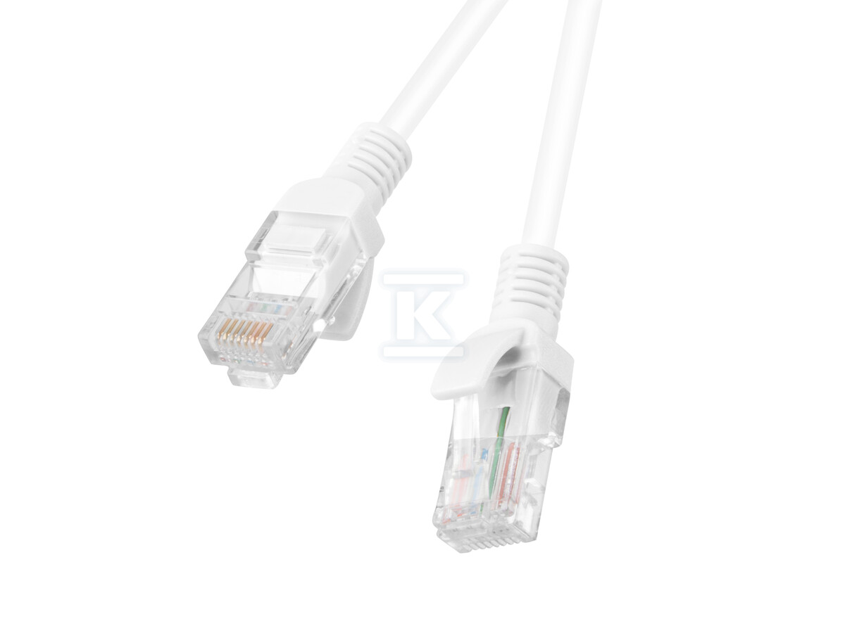 Патч-корд характеризується конструкцією U/UTP – він неекранований, що робить його хорошим вибором для середовищ, де не виникають сильні електромагнітні перешкоди. Товщина дроту 26AWG (7 x 0,15 мм) забезпечує відповідну гнучкість кабелю та полегшує його прокладку. Зовнішній діаметр кабелю становить 4,8 мм, що дозволяє зручно укладати його в існуючу інфраструктуру. Білий колір полегшує ідентифікацію кабелів у шафах стійок та під час встановлення.