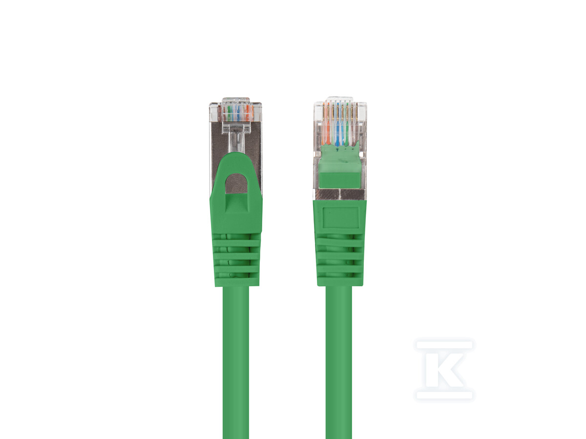 Патч-корд був розроблений з урахуванням легкості встановлення та використання. Виготовлений з провідників 26AWG (7 x 0,16 мм) забезпечує відповідну гнучкість та довговічність. Застосування екранування з фольги (F/UTP) захищає сигнал від зовнішніх перешкод, що особливо важливо в промислових або офісних середовищах. Колір зелений (RAL6024) полегшує ідентифікацію кабелю в мережевій установці.