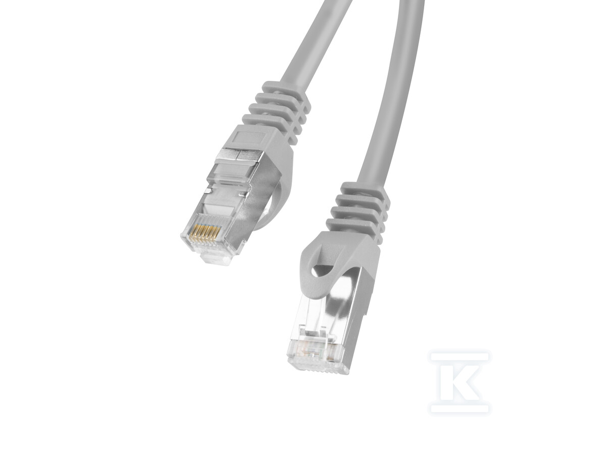 Патч-корд розроблений з урахуванням продуктивності та довговічності. Він використовує жили, виготовлені з міді, покритої алюмінієм (CCA) товщиною 26AWG (7 x 0,16 мм), що забезпечує хорошу провідність і гнучкість. Екранування фольгою мінімізує електромагнітні перешкоди, що впливають на якість сигналу. Зовнішній діаметр кабелю становить 5,7 мм (+/- 0,2 мм), а його сіра (RAL7035) оболонка з ПВХ захищає від механічних пошкоджень. Кабель відповідає нормам ANSI/TIA/EIA-568-B та ISO/IEC 11801 класу E.