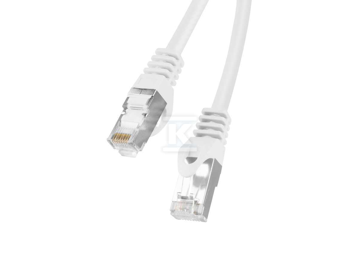 Патчкорд виготовлений з провідників CCA (Copper Clad Aluminum) товщиною 26AWG (7 x 0,16mm), що забезпечує добру гнучкість і легкість у прокладанні. Зовнішній діаметр кабелю становить 5,7mm (+/- 0,2mm), а його білий колір (RAL9010) полегшує ідентифікацію та естетичне узгодження з оточенням. Провід пристосований до роботи з частотою до 250MHz та підтримує швидкості передачі даних до 10 Гбіт/с.