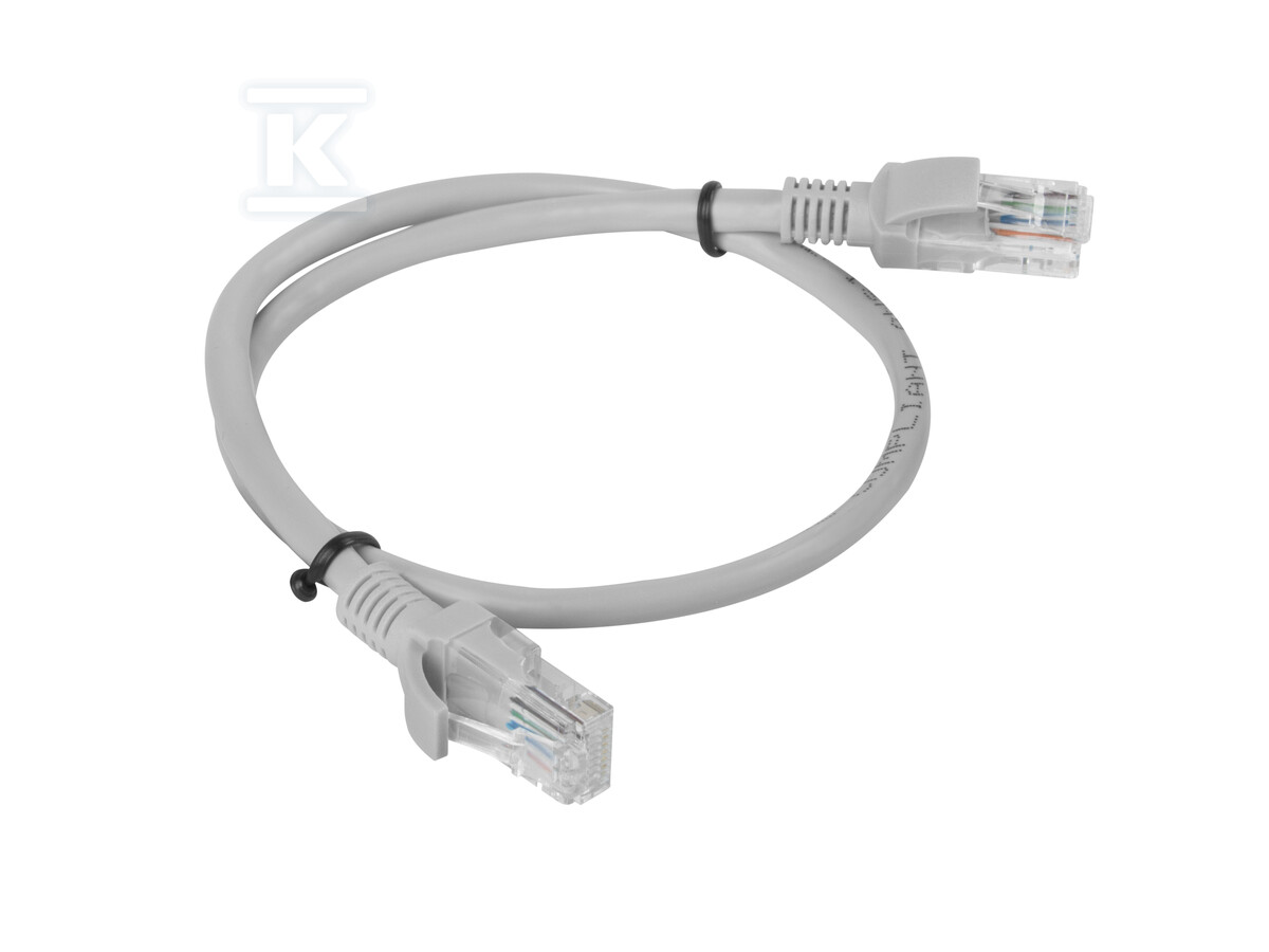 Патч-корд виготовлений з провідників CCA (мідно-алюмінієвого сплаву) та обгорнутий оболонкою з ПВХ, що забезпечує гнучкість і довговічність. Його зовнішній діаметр становить приблизно 5,4 мм, а товщина дроту – 26 AWG (7 x 0,16 мм). Кабель працює в діапазоні частот до 250 МГц і підтримує пропускну здатність до 10 Гбіт/с. Відсутність екранування (U/UTP) робить його хорошим вибором там, де не виникають сильні електромагнітні перешкоди. Сірий колір (RAL7035) полегшує ідентифікацію кабелю в установці. Додатково кабель має надрукований лічильник довжини через кожен метр, що полегшує управління кабельною системою.