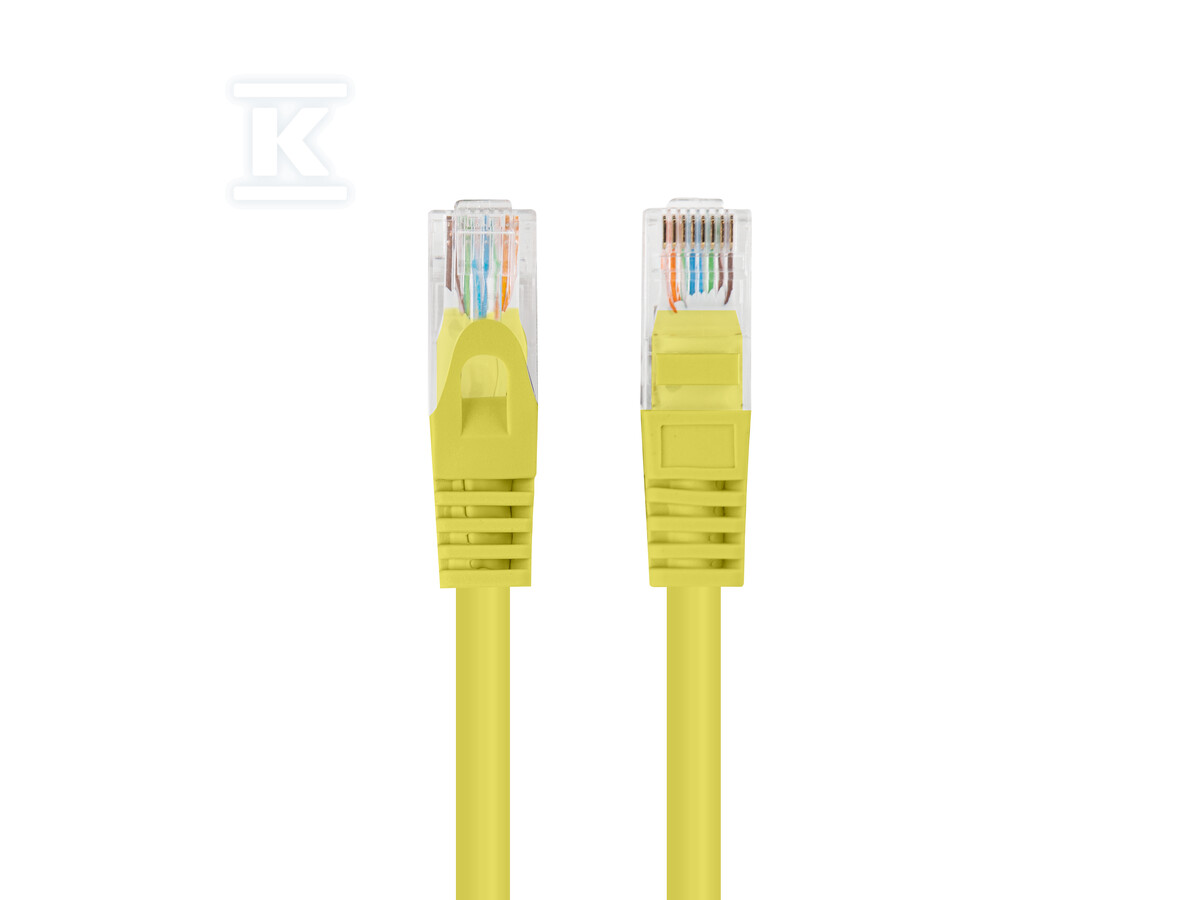 Патчкорд виготовлений з провідників CCA (Copper Clad Aluminum) та має оболонку з PVC, що забезпечує йому відповідну гнучкість та довговічність. Відсутність екранування (U/UTP) робить кабель менш чутливим до електромагнітних перешкод у типових умовах експлуатації. Категорія 6 дозволяє досягти пропускної здатності до 10 Гбіт/с на коротких відстанях та до 1 Гбіт/с на повній довжині 7,5 метра, при частоті до 250 МГц. Це ідеальне рішення для з'єднань між роутерами, комутаторами, серверами, комп'ютерами та іншими мережевими пристроями, обладнаними портами RJ-45. Жовтий колір полегшує візуальну ідентифікацію кабелю в інсталяції – особливо корисне при багатьох з'єднаннях.