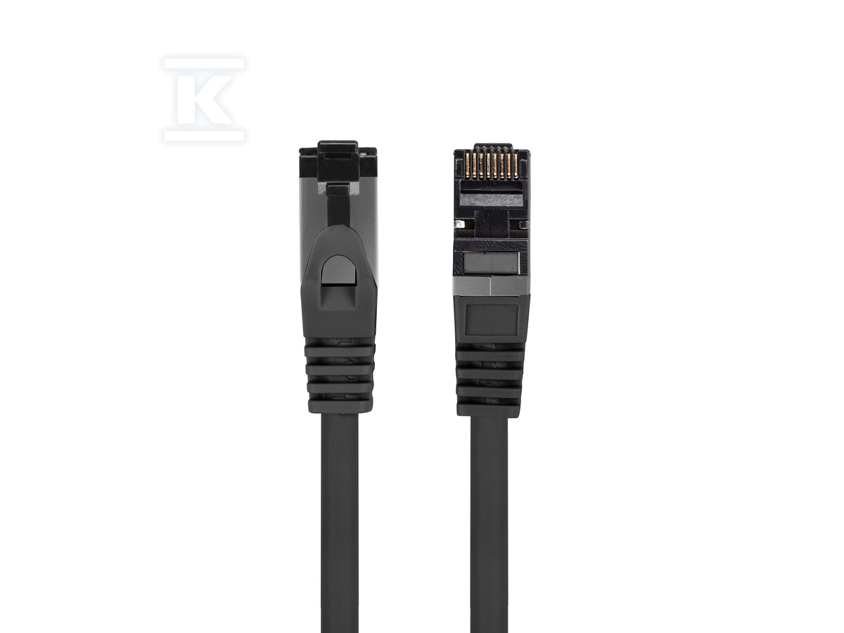Категорія 8.1 забезпечує пропускну здатність, достатню для найновіших мережевих стандартів, а екранування S/FTP (Screened/Foiled Twisted Pair) – подвійне екранування (фольга та обплетення) – ефективно зменшує електромагнітні перешкоди (EMI). Довжина 3 метри є оптимальною для з'єднань у шафах rack і між пристроями поблизу. Провідники зі стандартною товщиною AWG 26 забезпечують хорошу гнучкість і провідність, а максимальна частота роботи на рівні 2000 МГц підтверджує можливість обробки дуже швидкої передачі даних. Зовнішній діаметр кабелю становить 6.2 мм, що полегшує його прокладання в тісних просторах, а чорний колір полегшує ідентифікацію та організацію кабельної мережі.