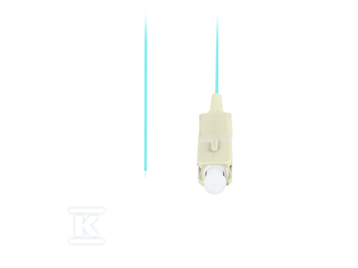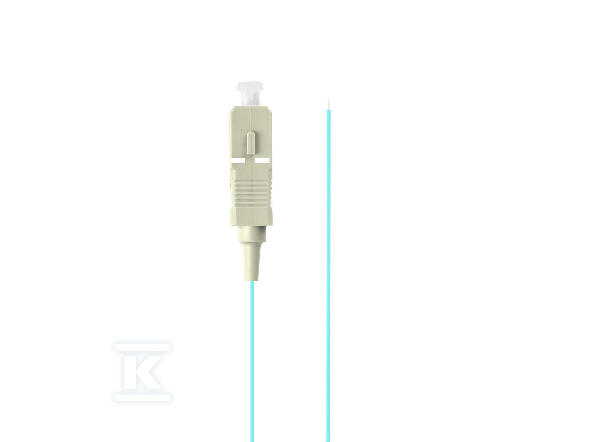 Пігтейл характеризується діаметром волокна 50/125 µm та зовнішнім діаметром 0.9 mm. Мінімальний радіус згину становить 7.5 mm, що полегшує прокладання кабелів у тісних просторах. Бірюзовий колір полегшує ідентифікацію та організацію кабелів. Відбиваюча здатність на рівні 35 dB додатково покращує якість сигналу та мінімізує перешкоди. Це надійний вибір для кожного, хто потребує надійного та легкого в установці оптичного пігтейла.