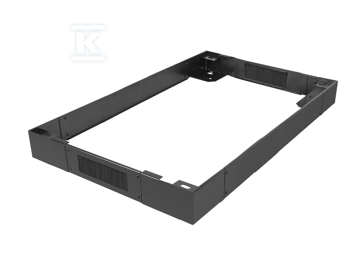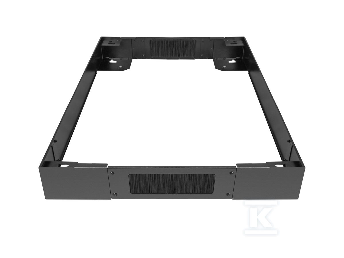 П'єдестал виготовлений зі сталі, що перекладається на його високу стійкість до навантажень. Його головним завданням є підняття стійкової шафи, забезпечуючи простір для прокладання кабелів та полегшуючи доступ до пристроїв. Завдяки цьому організація кабелів стає простішою, а обслуговування – зручнішим. Висота 100 мм дозволяє вільно прокладати кабелі без необхідності їх згинання чи закріплення.