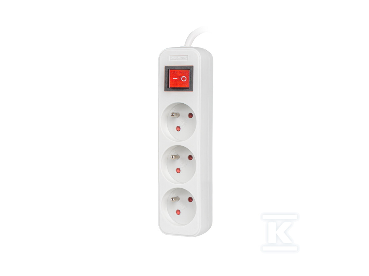 Подовжувач 3м 3x 230 V PL з вимикачем, кабель виготовлений з повної міді, білий PS1-03E-0300-W