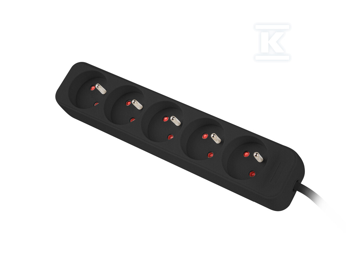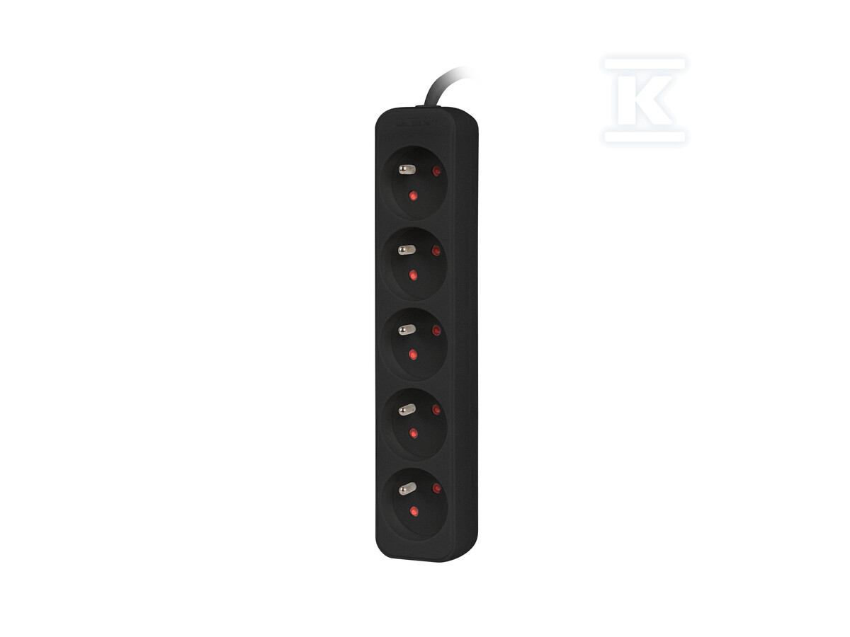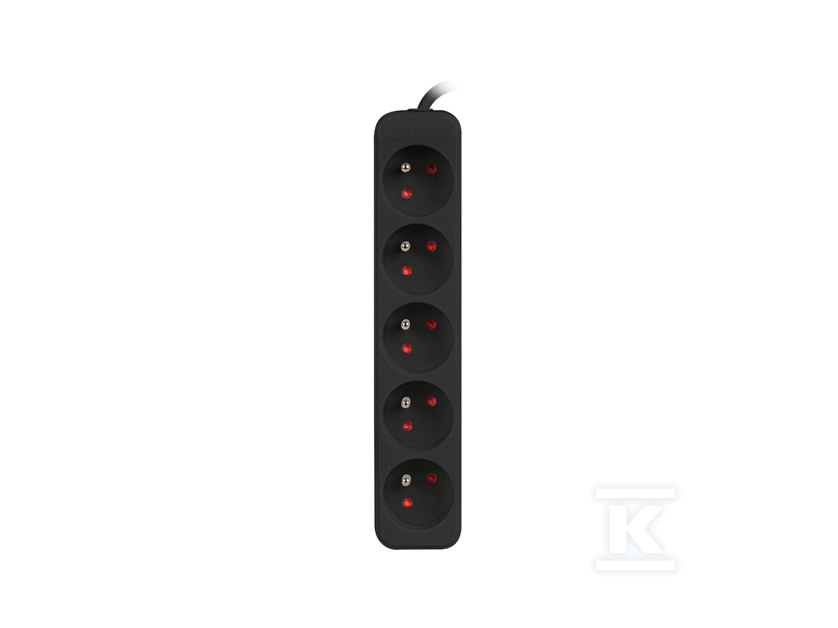 Подовжувач оснащений автоматичним запобіжником 10A, який захищає від перевантаження та короткого замикання. Додатково, використано три варистори із загальним поглинанням енергії 555J, що забезпечує ефективний захист від перенапруг – як тих, що викликані грозою, так і від перешкод в електромережі. Завдяки цьому чутливі електронні пристрої, такі як комп’ютери чи телевізори, захищені від пошкоджень. Швидкий час реакції запобіжника (10 наносекунд) гарантує негайне відключення живлення у разі аварії. Максимальна потужність подовжувача становить 2500W. Подовжувач має розетки типу E, штекер Uni-schuko та кабель довжиною 3 метри. Забезпечує захист від перевантаження, перенапруги та має захист від дітей. Колір подовжувача – чорний.