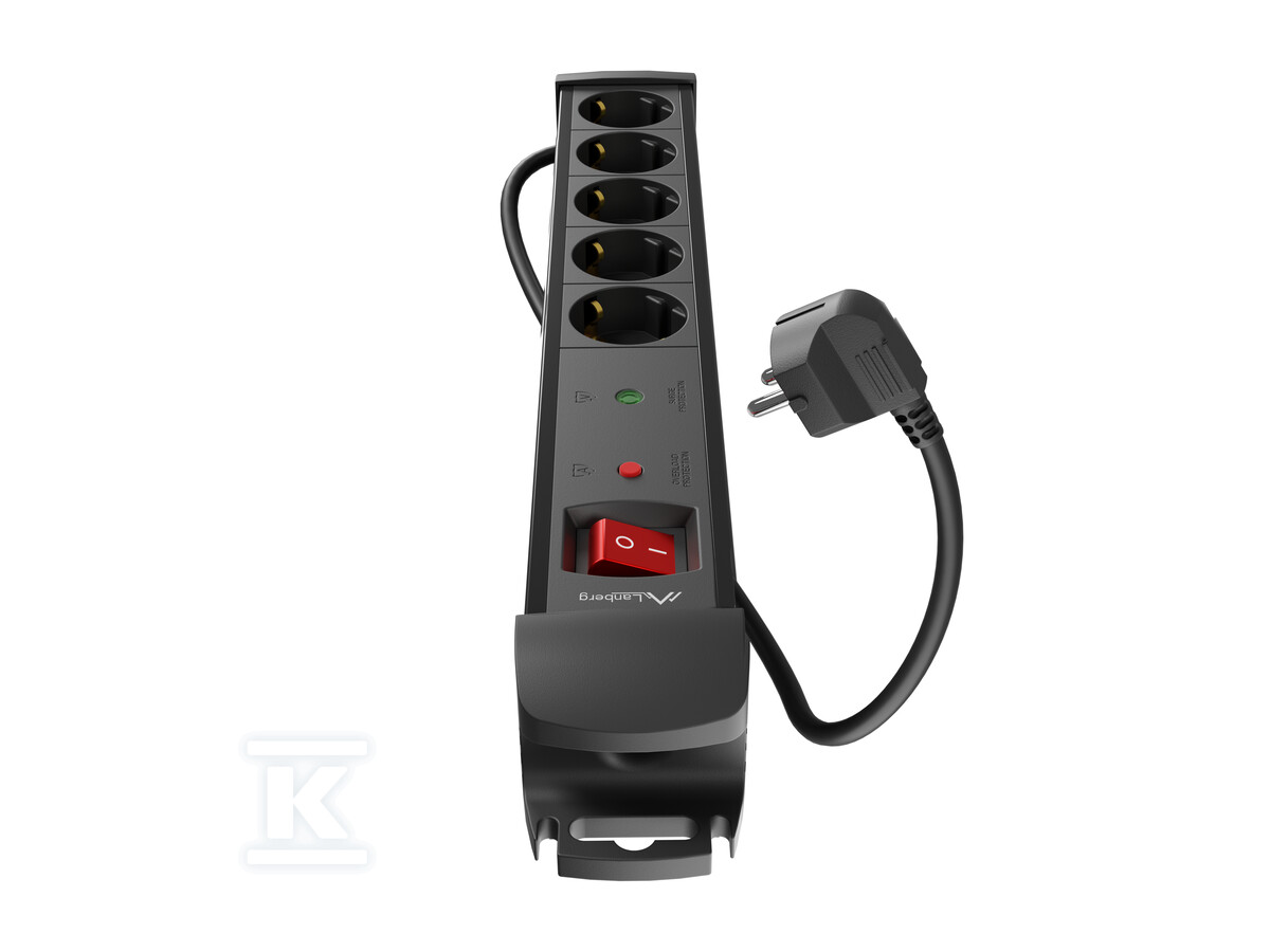 Подовжувач Lanberg SP1-05F-0300-BK – це не лише захист, але й зручність. Підсвічений вимикач безпеки дозволяє легко відключати живлення, а вбудовані захисні шторки розеток захищають від випадкового дотику до проводів. Захист від дітей – це додаткова перевага для сімей з маленькими дітьми. Конструкція подовжувача дозволяє монтувати його як у вертикальному, так і в горизонтальному положенні – ідеально для різних просторових рішень. Продуманий дизайн дозволяє змотати надлишок кабелю, підтримуючи порядок навколо робочого місця.
