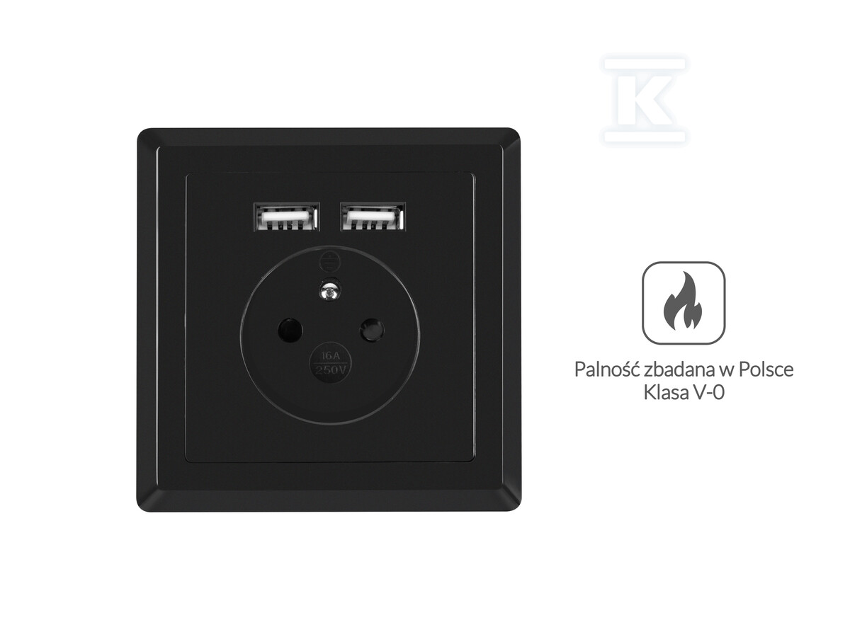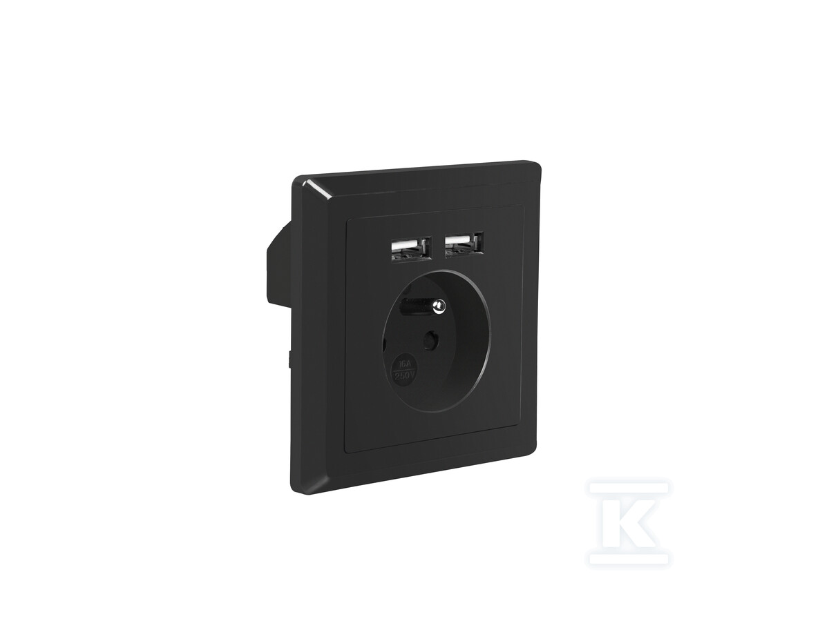 Підрозетник 230 V одинарний + 2x USB 2.1 A french чорний AC-WS01-USB2-E-B