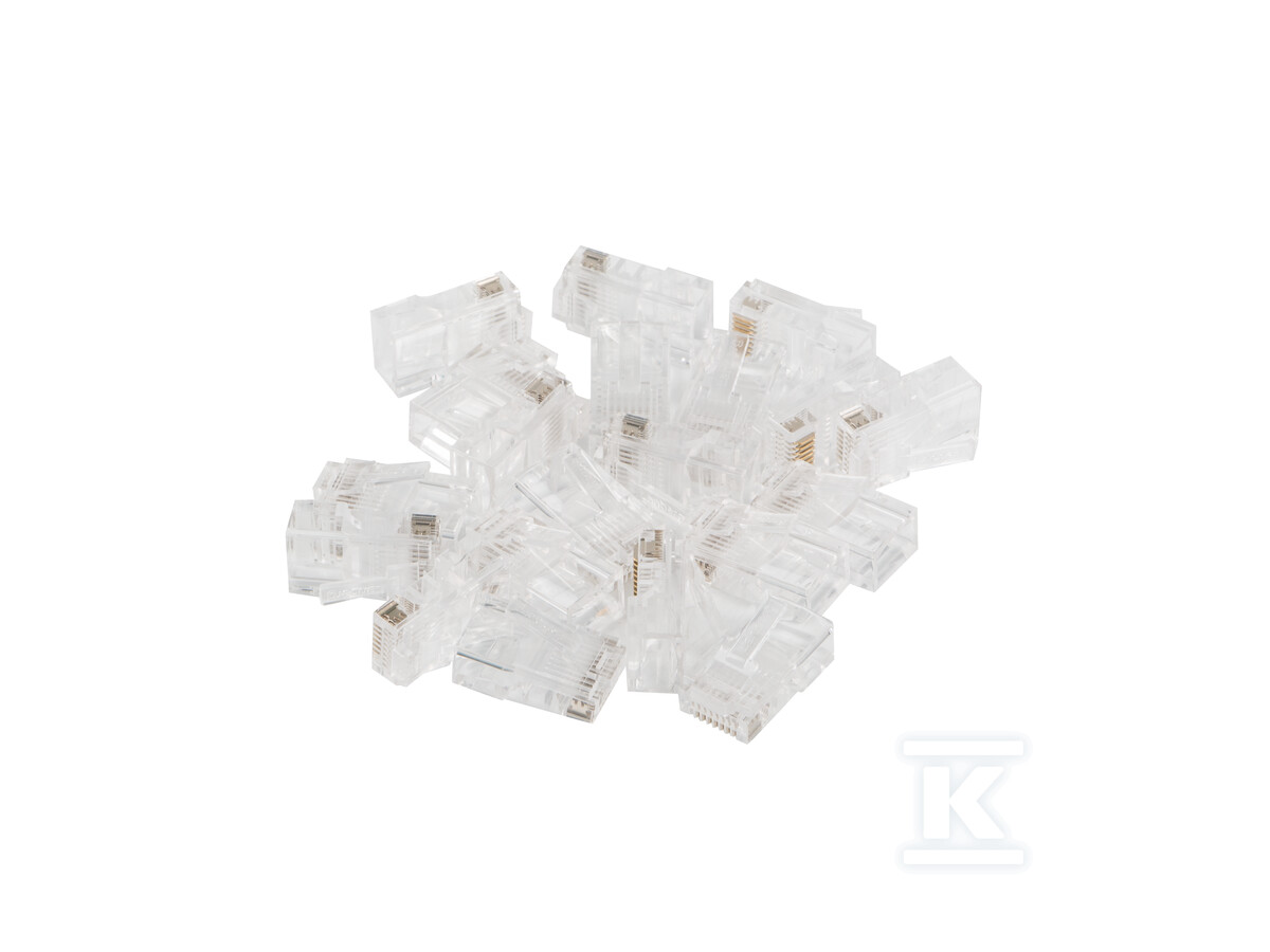 Роз'єми виготовлені з міцного пластику, що гарантує їх тривалий термін експлуатації. Прозорий колір полегшує візуальний контроль правильності з'єднання провідників. Набір 20 шт. – це оптимальне рішення як для професіоналів, які реалізують більші проекти, так і для кінцевих користувачів, яким потрібен запас роз'ємів для власних ремонтів або модифікацій мережі. Застосування роз'ємів категорії 5E дозволяє передавати дані зі швидкістю до 100 МГц, чого достатньо для більшості домашніх та офісних застосувань.