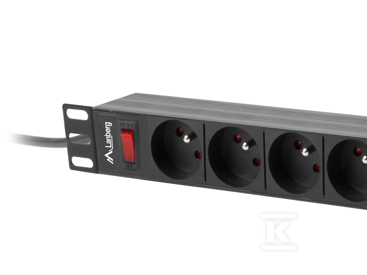 Колодка виготовлена з міцного анодованого алюмінію, що гарантує її довговічність та стійкість до пошкоджень. Горизонтальне встановлення в шафі стійки просте та інтуїтивно зрозуміле, а відкручувані монтажні вушка дають можливість гнучкого налаштування під різні конфігурації. Довжина кабелю 3 метри забезпечує зручність розташування в шафі. Обладнана 9 розетками типу E (європейського/французького), дозволяє підключати багато пристроїв одночасно. Вбудований вимикач з підсвічуванням полегшує контроль над живленням, а автоматичний запобіжник 16A захищає від перевантаження та короткого замикання – реагуючи дуже швидко (25 нс).
