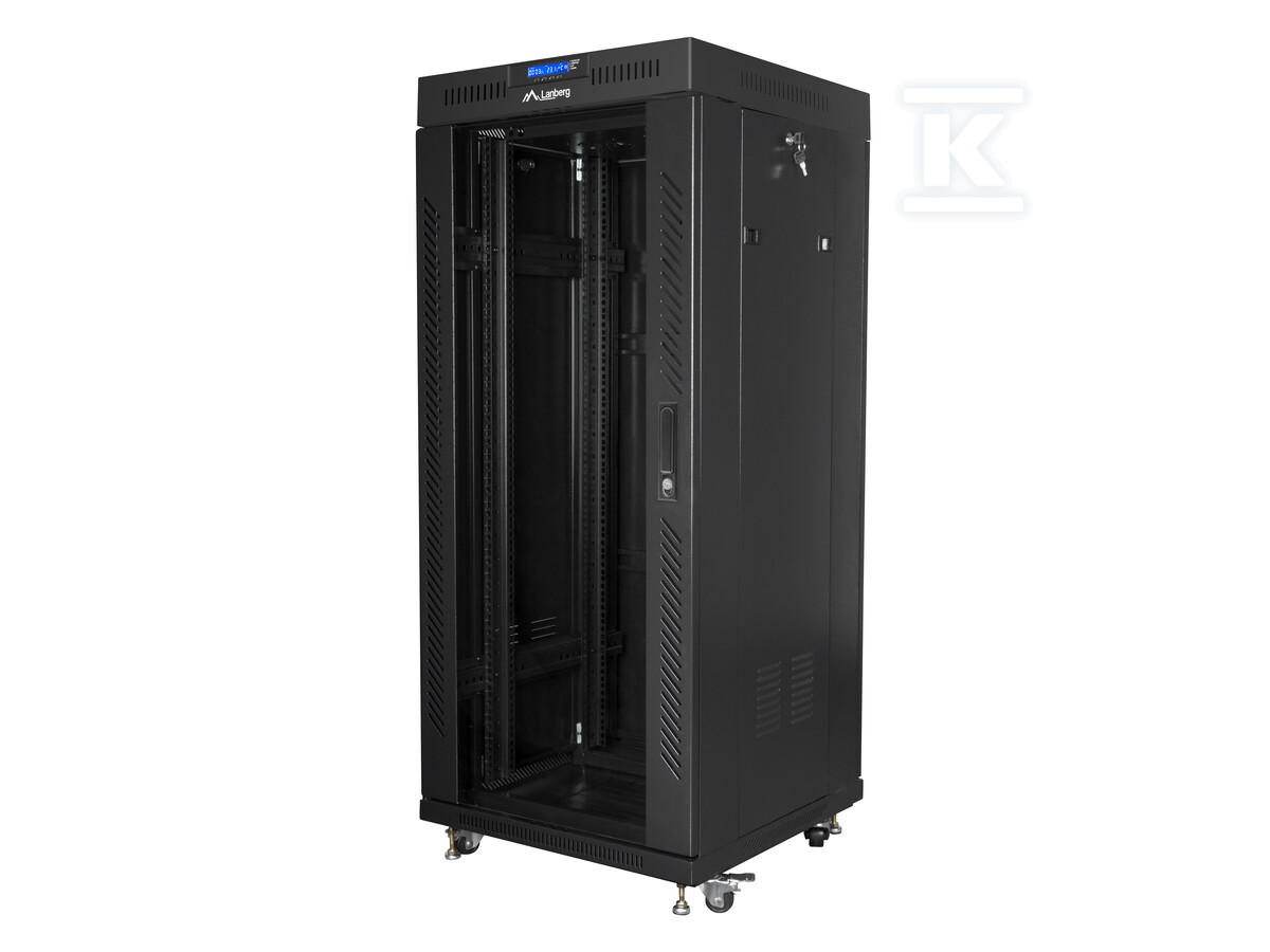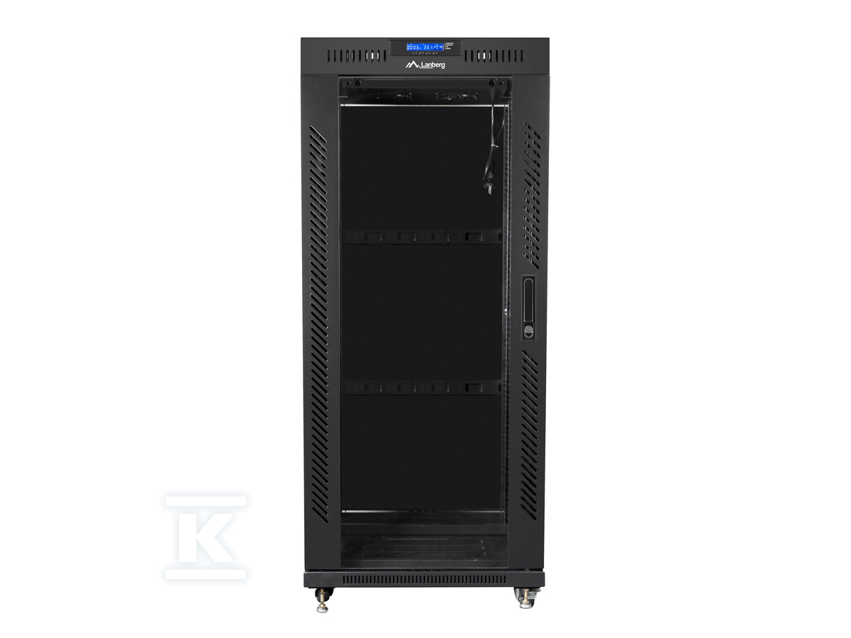 Шафа була розроблена з урахуванням безпеки вашого обладнання. Вона оснащена скляними дверима із замком, які забезпечують легкий доступ до пристроїв, одночасно захищаючи їх від несанкціонованого доступу. Крім того, міцна конструкція з високоякісної холоднокатаної сталі забезпечує стабільність і міцність, а збільшене навантаження до 1200 кг дозволяє встановлювати навіть важке обладнання. Вбудований РК-панель з термостатом дозволяє контролювати температуру всередині шафи та керувати роботою вентиляторів, що дозволяє підтримувати оптимальні умови роботи для чутливих компонентів. Заземлення шафи додатково підвищує безпеку використання.