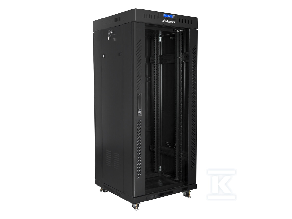 - Безпека: Скляні двері із замком захищають обладнання від несанкціонованого доступу.