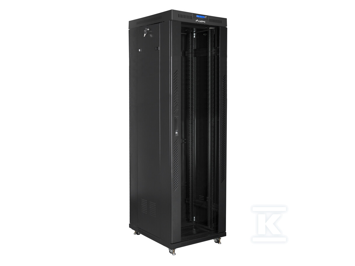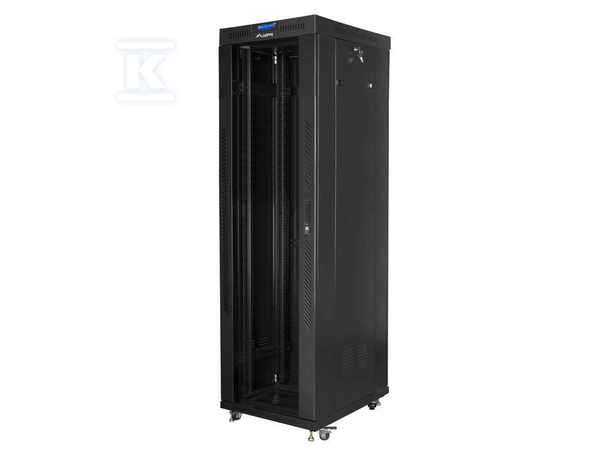 Стелаж інсталяційний RACK стійка 19" 42U 600x800 чорні скляні двері LCD (розбірна) V2 FF01-6842-12BL
