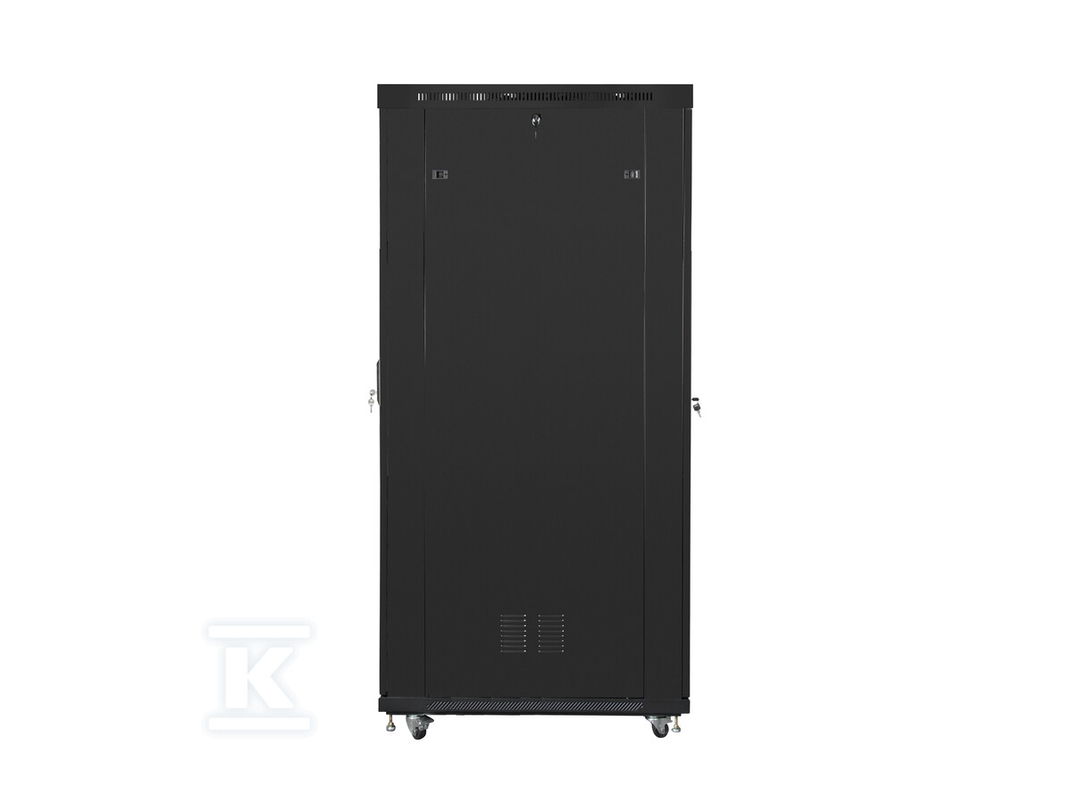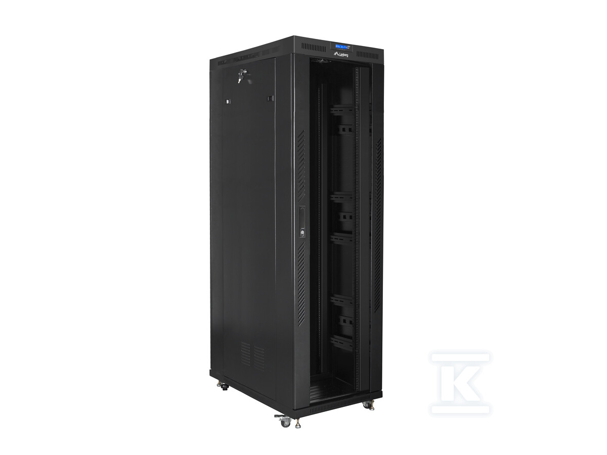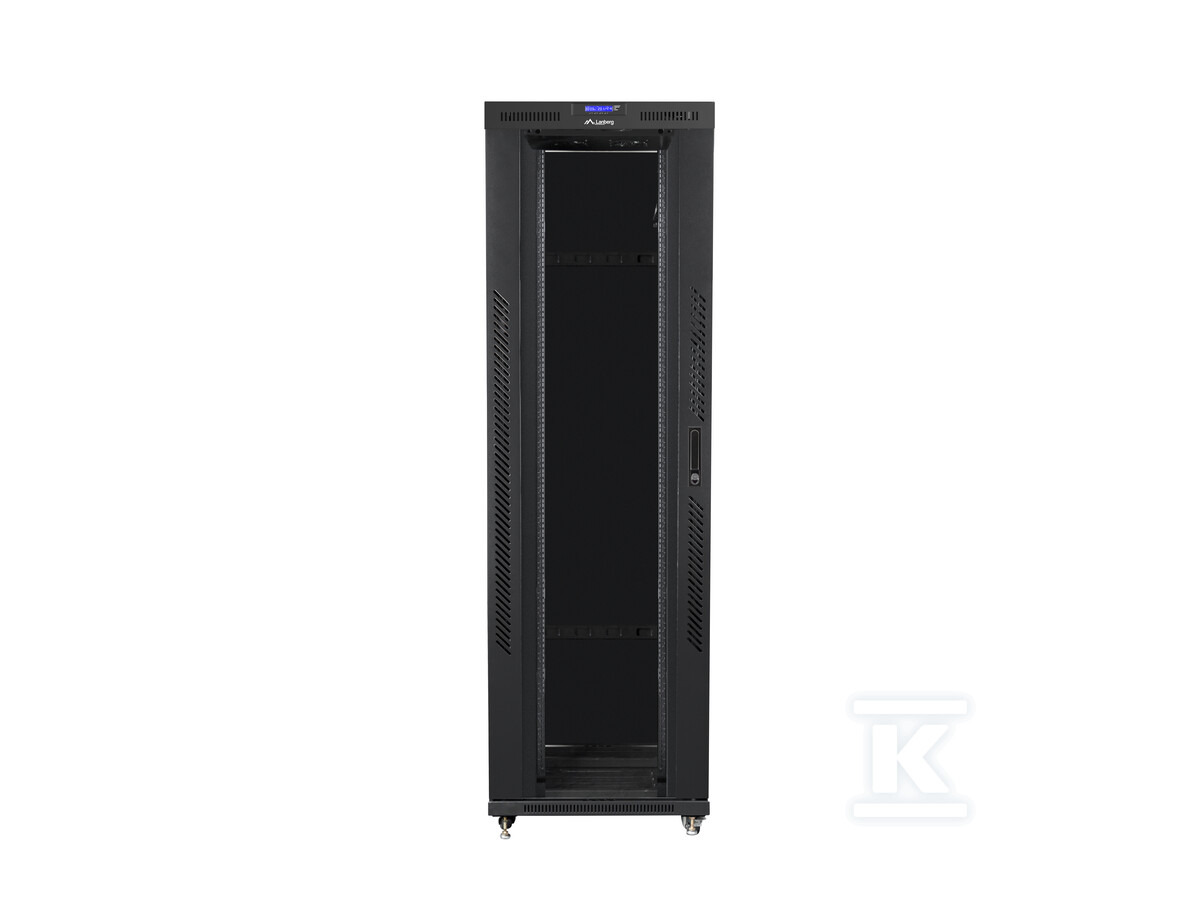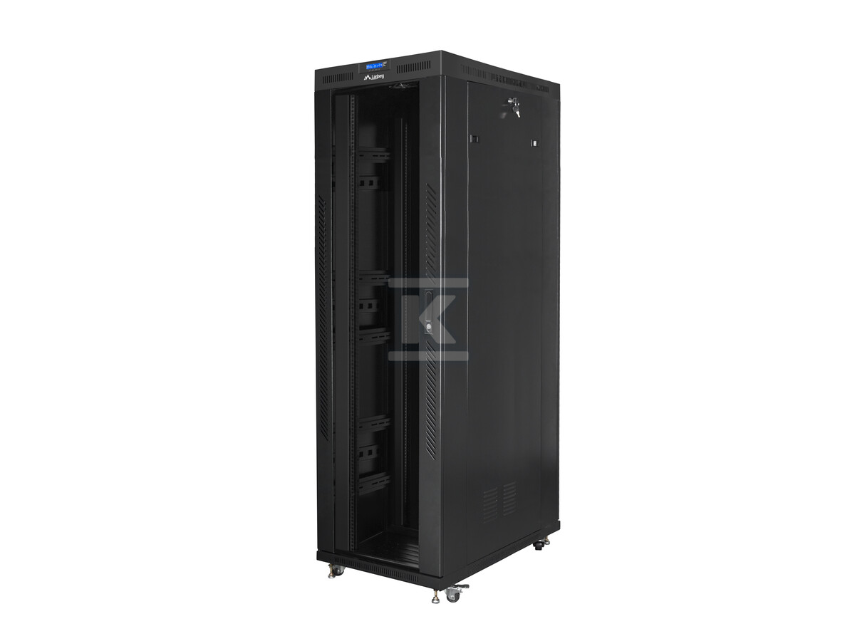 - Ефективне охолодження: Чотири вентилятори 230V забезпечують належну циркуляцію повітря всередині стелажа, запобігаючи перегріву обладнання. Вентиляційний отвір у верхній частині конструкції додатково підтримує процес охолодження.