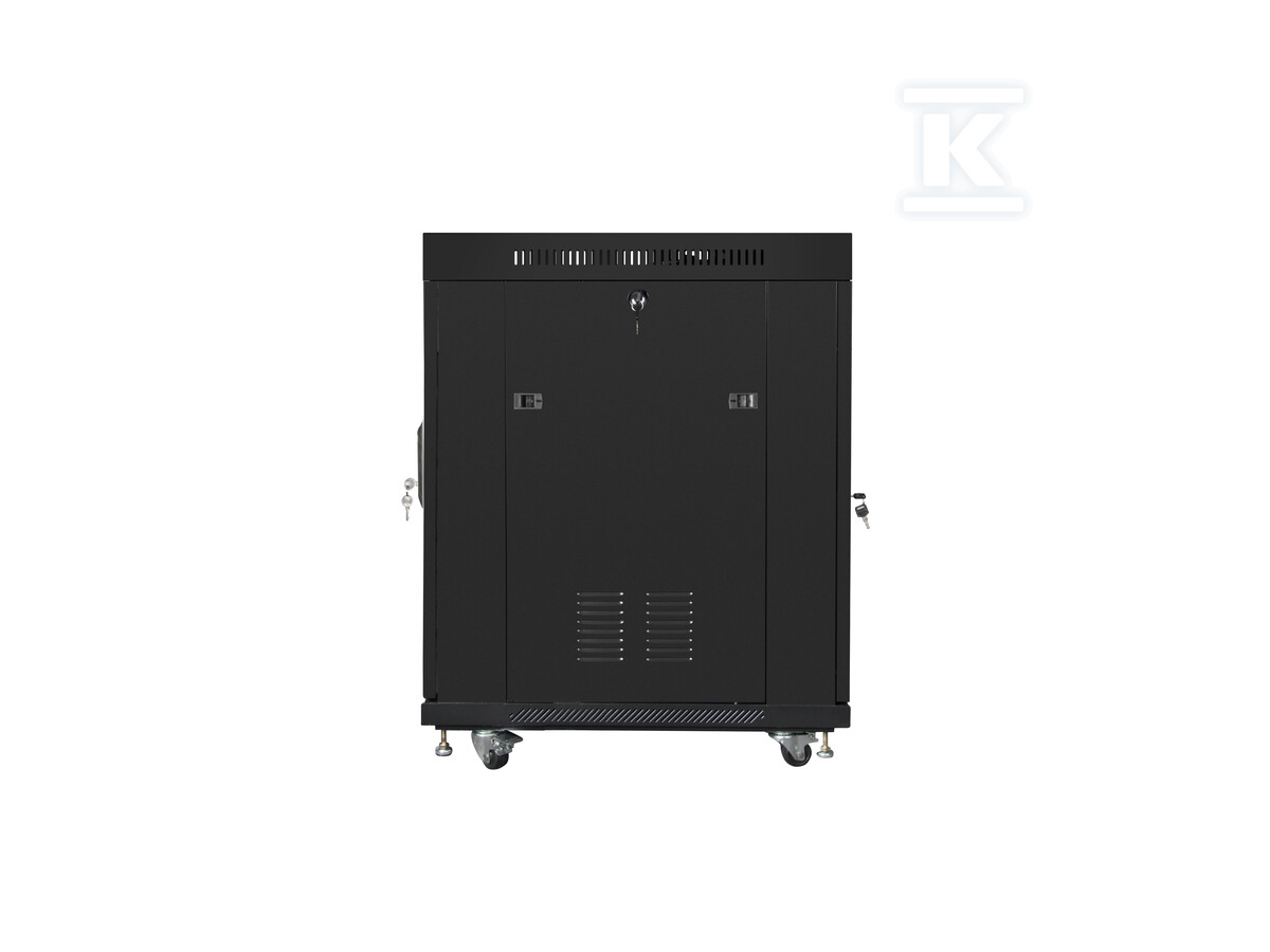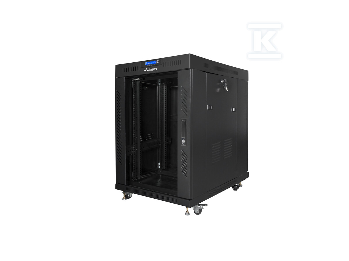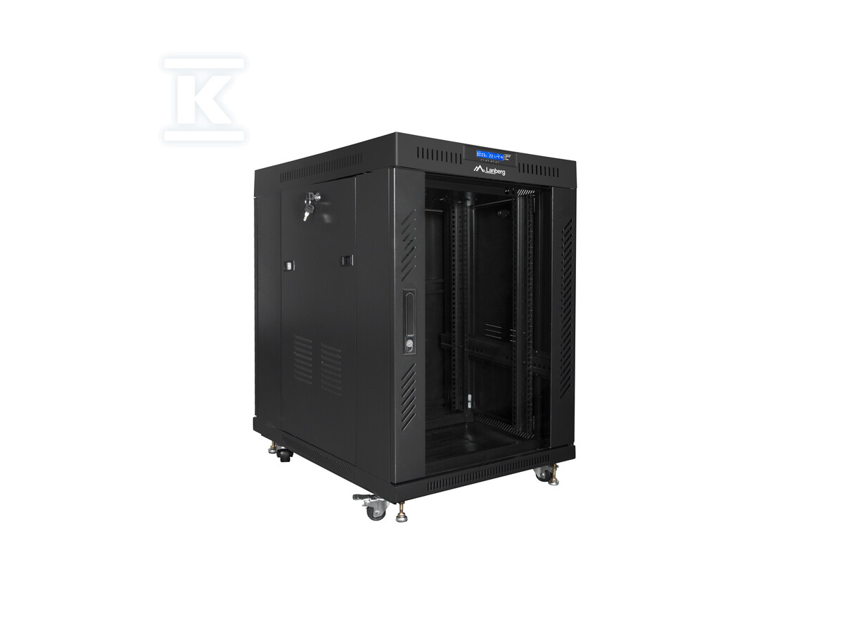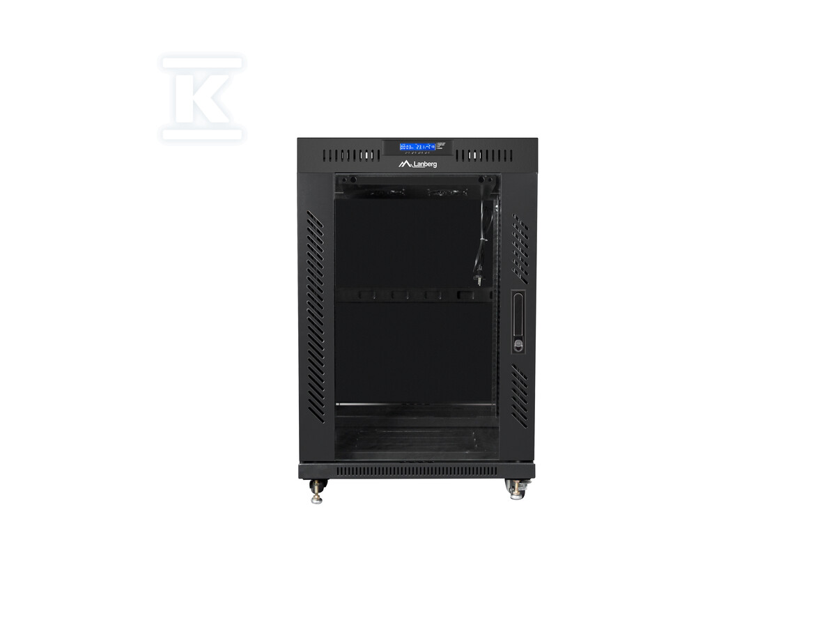 Шафа оснащена низкою практичних рішень, які полегшують управління IT-інфраструктурою. Прозорі скляні двері передні із замком забезпечують легкий доступ до обладнання, а водночас захищають його від несанкціонованого доступу. Панель LCD з термостатом дозволяє моніторити температуру всередині шафи та ручне керування вентиляторами, що є ключовим для підтримки оптимальних умов роботи пристроїв. У комплекті також є організатори кабелів, які допомагають підтримувати порядок в кабельному господарстві.