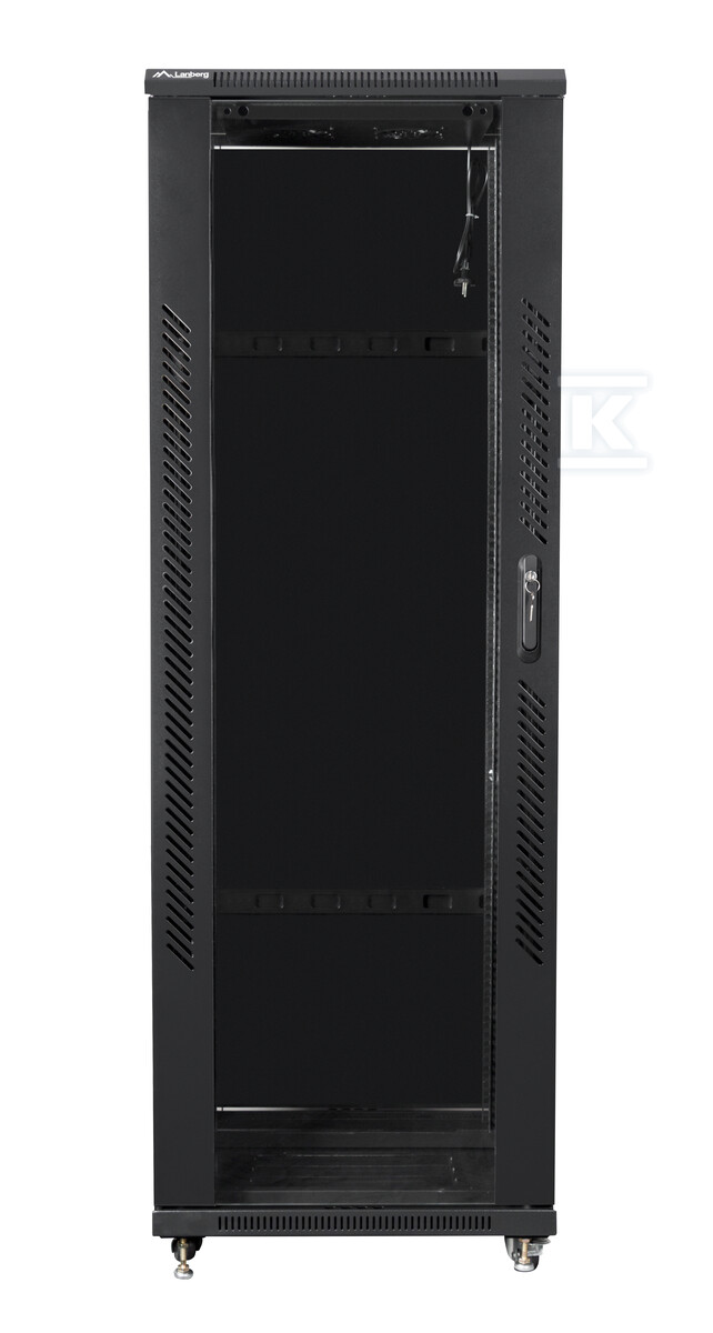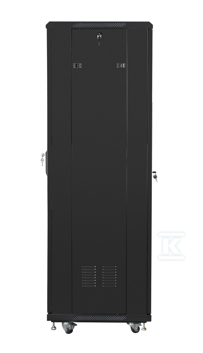 Шафа Lanberg FF01-6637-12B розроблена з урахуванням зручності використання та безпеки обладнання. Скляні передні двері дозволяють швидко ідентифікувати пристрої всередині, а металеві задні двері забезпечують додаткову безпеку. Максимальний кут відкриття передніх дверей становить 215 градусів, що полегшує доступ до компонентів під час обслуговування або модернізації. Шафа також має систему заземлення, що охоплює передні, задні двері та раму, що мінімізує ризик пошкоджень, спричинених статичною електрикою. У комплект входять як ніжки, так і коліщатка з гальмом, що дозволяє легко переміщати шафу та стабільно встановлювати її в кінцевому місці.