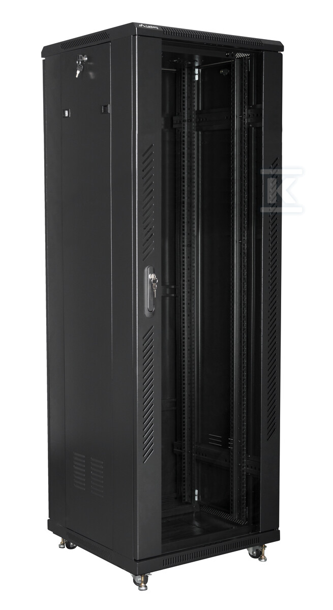 Ця стійка шафа 19" заввишки 37U є надійним та функціональним рішенням для професіоналів в галузі телеінформатики та користувачів, які шукають безпечний та організований спосіб зберігання серверного обладнання. Конструкція шафи, виготовлена з високоякісної холоднокатаної сталі, забезпечує міцність і стабільність, а продуманий дизайн дозволяє ефективно використовувати доступний простір. Шафа постачається у вигляді "flat pack", що полегшує транспортування та монтаж, особливо у місцях з обмеженим доступом.