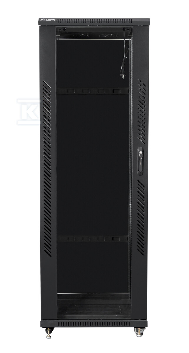 Шафа Lanberg FF01-6837-12B вирізняється продуманою конструкцією, що забезпечує легкий доступ до обладнання та ефективне охолодження. Виготовлена з високоякісної холоднокатаної сталі, характеризується міцністю та точністю виконання. Передні двері виготовлені з гартованого скла, що дозволяє візуально контролювати вміст шафи, а також додає їй сучасного вигляду. Задні двері виготовлені з металу, забезпечуючи додаткову безпеку. Шафа також має знімні бічні панелі із замками та верхню та нижню панелі із заглушками, що полегшує прокладання кабелів.
