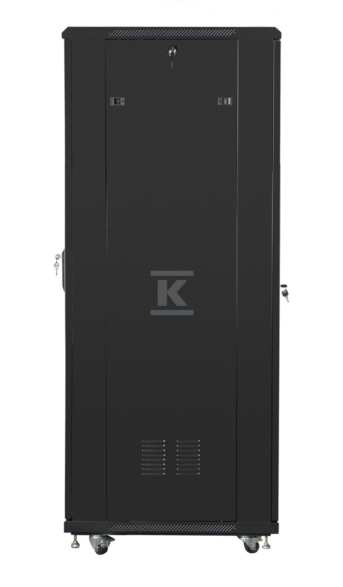 У комплекті є коліщатка з гальмами та регульовані ніжки, що дозволяє легко переміщати та стабільно встановлювати шафу в будь-якому місці. Крім того, шафа оснащена вентиляційним панеллю з чотирма вентиляторами 230V, що забезпечує оптимальну циркуляцію повітря та запобігає перегріву обладнання. Вбудований РК-дисплей інформує про температуру всередині шафи та статус роботи вентиляторів. Шафа також має заземлення для підвищення безпеки використання.