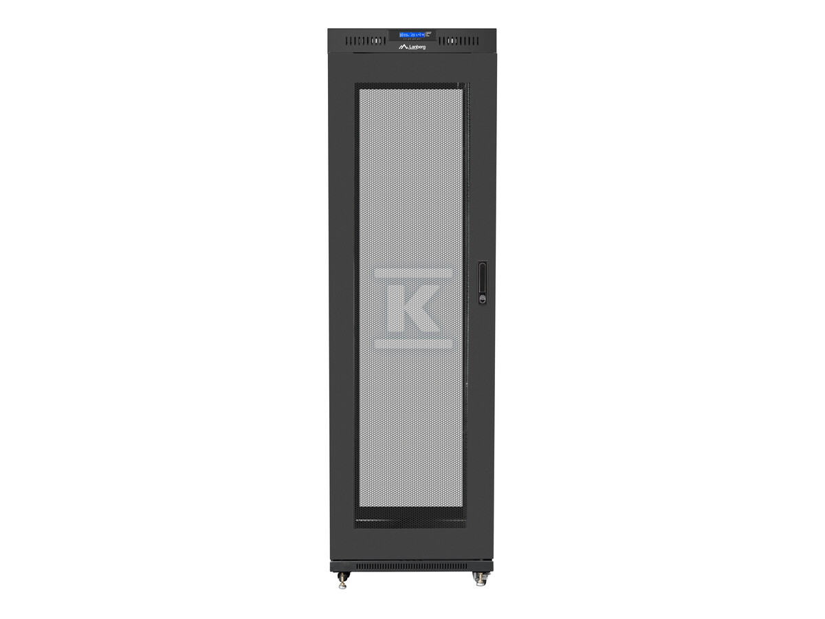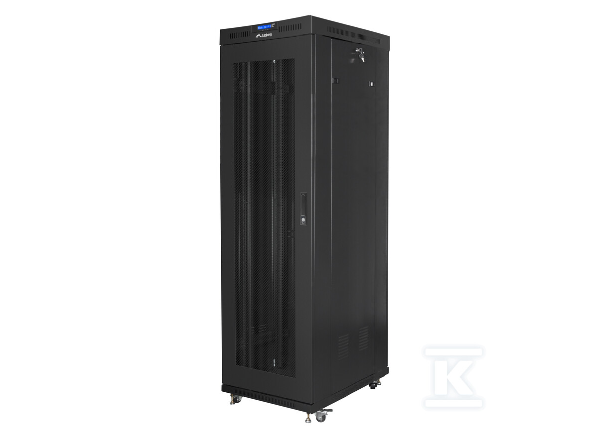 Стійка шафа Lanberg розроблена з урахуванням оптимального управління IT-інфраструктурою. Перфоровані передні та задні двері забезпечують ефективну вентиляцію, запобігаючи перегріву обладнання. Вбудована РК-панель з термостатом дозволяє контролювати температуру всередині шафи та ручне керування вентиляторами. Крім того, шафа має систему заземлення, яка захищає пристрої від пошкоджень, спричинених перенапругою. Збільшена вантажопідйомність до 1200 кг дозволяє встановлювати навіть важке обладнання без побоювань щодо стабільності конструкції.