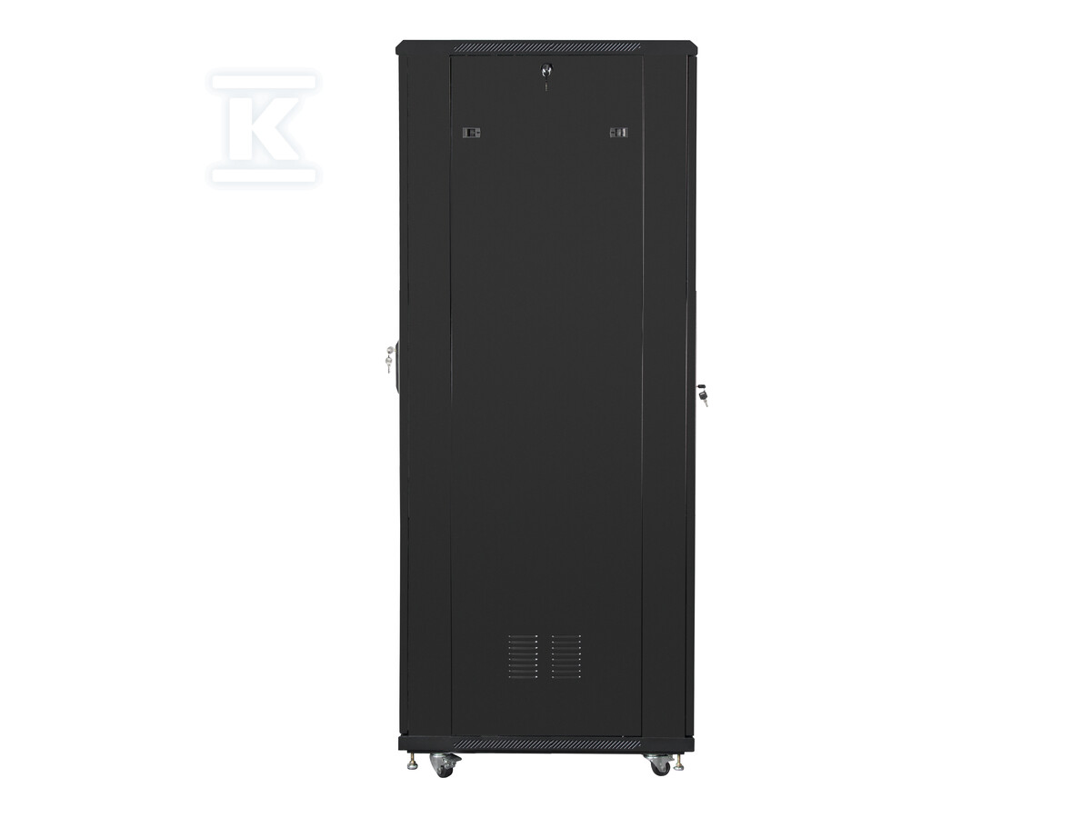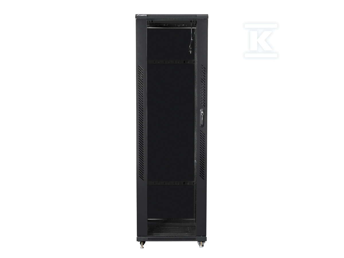 Шафа виготовлена з високоякісної холоднокатаної сталі, що забезпечує її довговічність та стійкість до навантажень. Передні двері з гартованого скла дозволяють легко візуально контролювати обладнання всередині, а також забезпечують безпеку завдяки замкам. Задні двері з міцної сталі додатково підвищують рівень захисту. Бічна панель знімна, що полегшує доступ до внутрішньої частини шафи під час обслуговування або розширення інсталяції. Шафа має вентиляційні отвори у верхній частині та 4 вентилятори 230V, які забезпечують ефективне охолодження обладнання, запобігаючи перегріву компонентів. Регульовані ніжки дозволяють стабільно встановити шафу на різних поверхнях. Завдяки конструкції типу "flat pack", шафа легко транспортується та монтується – всі елементи ретельно запаковані, а процес складання інтуїтивно зрозумілий.