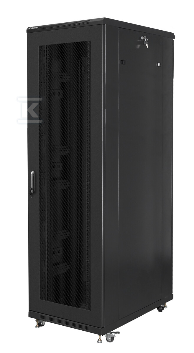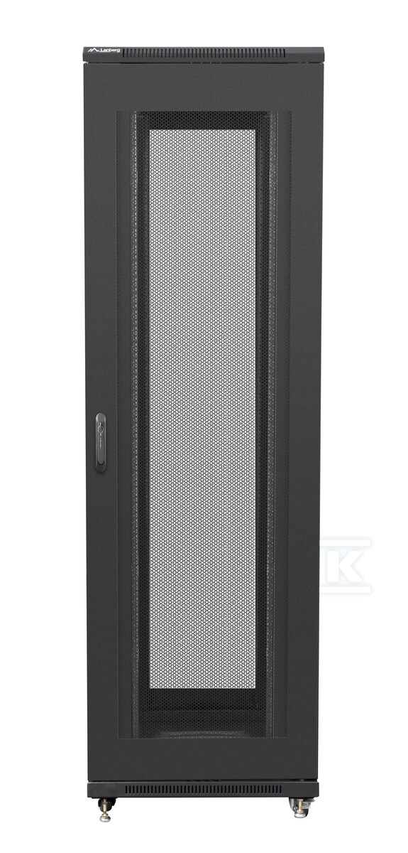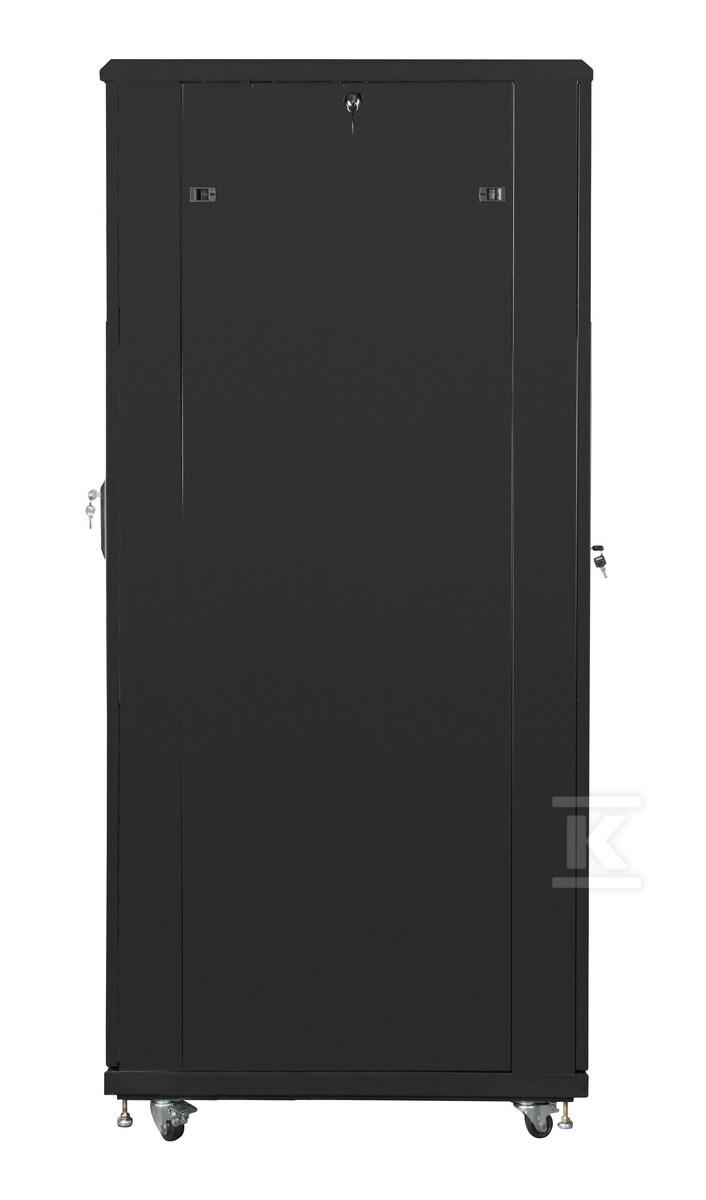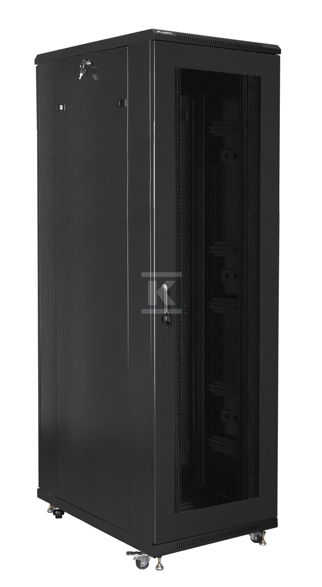 Шафа була розроблена з урахуванням зручності використання та безпеки обладнання, що зберігається. Перфоровані передні та задні двері забезпечують оптимальний потік повітря, запобігаючи перегріву пристроїв. Двері оснащені замками, що захищають від несанкціонованого доступу. Додатково, шафа має отвори для кабелів у верхній та нижній частині, що полегшує прокладання кабелів. У комплекті також є вертикальні організатори кабелів, які допомагають підтримувати порядок всередині шафи. Міцна конструкція з сталевого листа, пофарбованого порошковим покриттям (колір чорний RAL 9004) забезпечує стійкість до корозії та механічних пошкоджень.