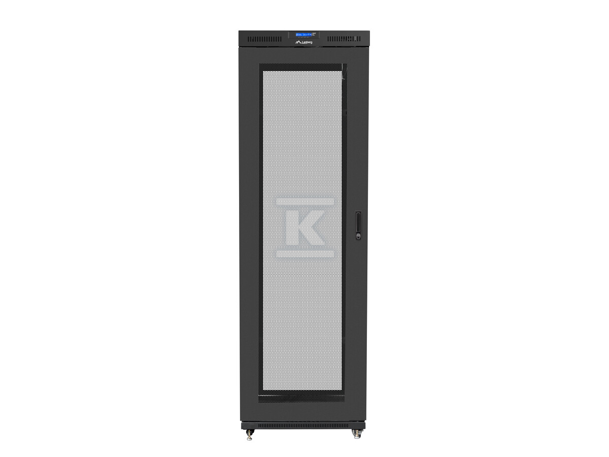 Шафа виготовлена з високоякісної холоднокатаної сталі, що забезпечує її міцність і стійкість до навантажень. Збільшена товщина ключових елементів конструкції – верхньої та нижньої кришки, рами та горизонтальних балок – підвищує максимальне статичне навантаження до 1200 кг. Це дозволяє безпечно розмістити навіть важке серверне обладнання. Перфоровані передні та задні двері забезпечують оптимальний потік повітря, а вбудований РК-панель з термостатом дозволяє контролювати температуру всередині шафи та ручне керування роботою вентиляторів. Крім того, шафа має аж 6 місць для вентиляторів, що дозволяє адаптувати охолодження до специфічних потреб.