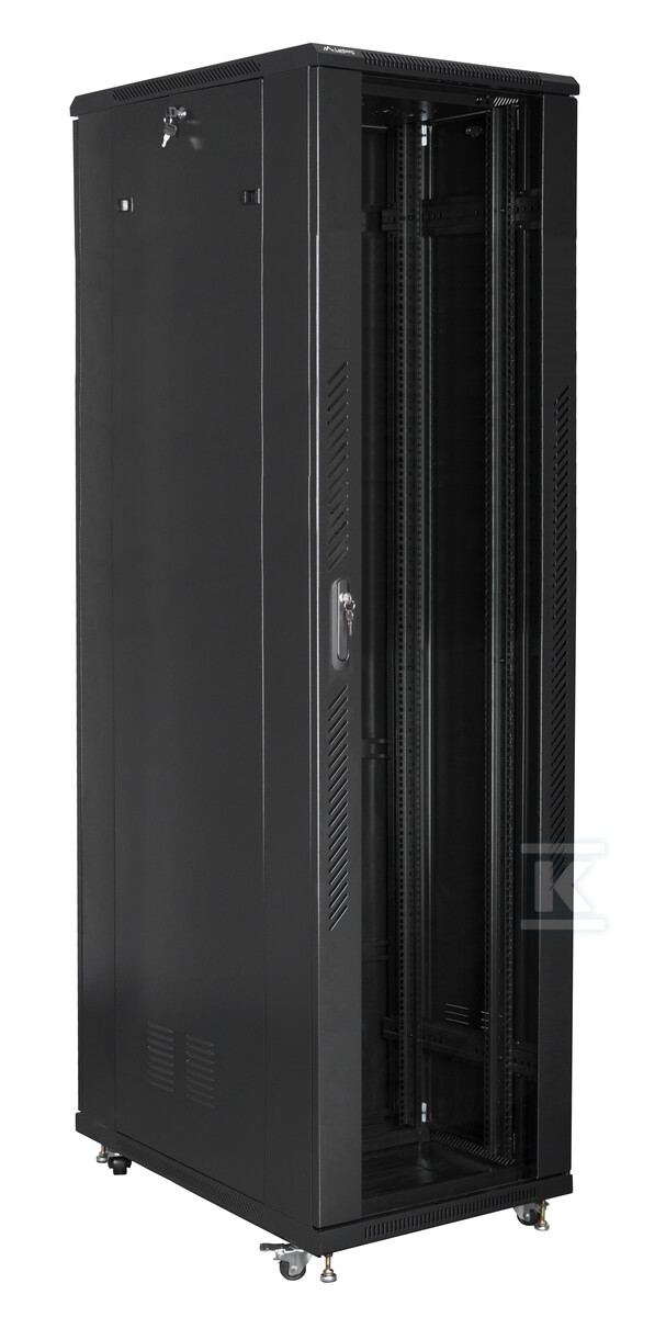 Стійка шафа FF01-8047-12B пропонує 47U телекомунікаційної висоти та виготовлена з високоякісної холоднокатаної сталі, що забезпечує її жорсткість і стійкість до навантажень. Передні двері, виготовлені з гартованого скла, дозволяють легко візуально контролювати встановлене обладнання, а можливість монтажу петель зліва або справа збільшує гнучкість встановлення. Міцні сталеві задні двері із замком забезпечують фізичну безпеку пристроїв. Шафа поставляється у вигляді "flat pack", що полегшує транспортування та монтаж навіть у важкодоступних місцях. У комплекті є всі необхідні монтажні аксесуари, включаючи гвинти M6, замки до бічних дверей та організатори кабелів.