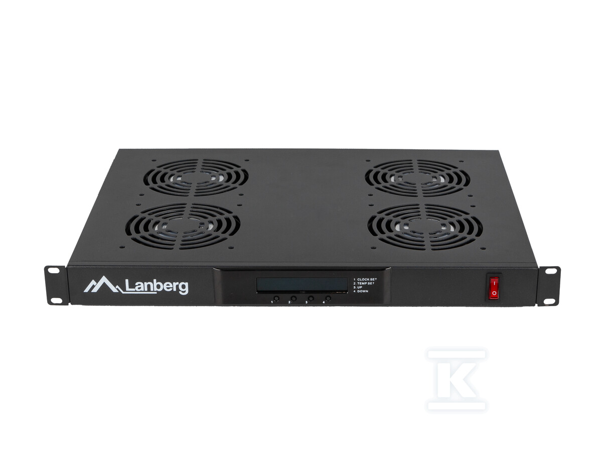 Панель оснащена термостатом з чітким LCD-дисплеєм, який дозволяє точно контролювати температуру та автоматично регулювати роботу вентиляторів. Це дозволяє адаптувати охолодження до поточних потреб, забезпечуючи стабільні умови роботи обладнання. Додатковий вимикач живлення полегшує обслуговування та дозволяє швидко відключити живлення за потреби.