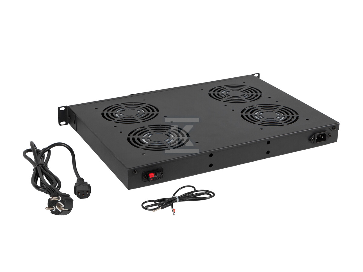 Вентиляційна панель LCD горизонтальна 1U з термостатом для шаф 19" 4 вентилятори 230 V чорний AK-1503-B