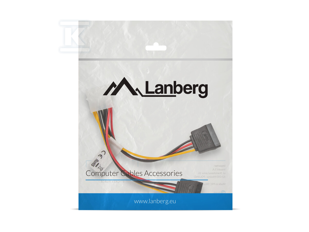 Потрібні додаткові роз'єми SATA у вашій конфігурації? Цей короткий, 15-сантиметровий кабель живлення марки Lanberg дозволить вам розділити один роз'єм Molex на два порти SATA. Це ідеальне рішення, коли не вистачає доступних проводів живлення в стандарті Molex, а ви хочете підключити додаткові диски SSD, HDD або інші пристрої, що вимагають живлення SATA.