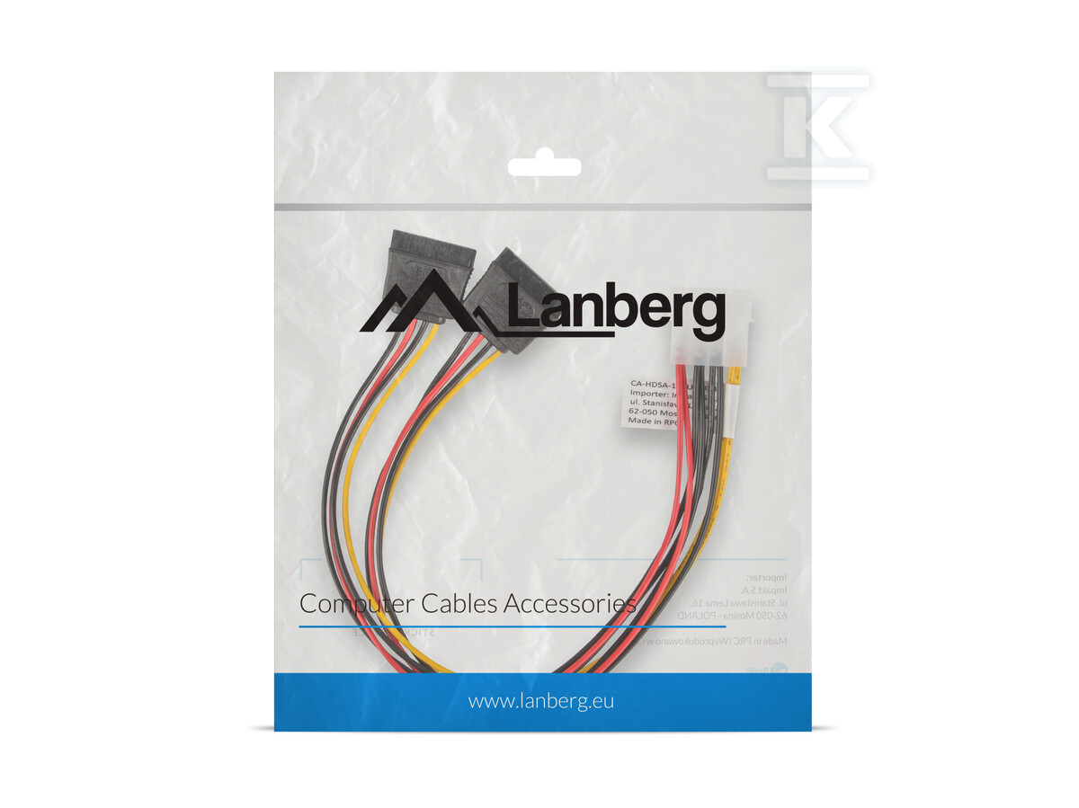 Кабель живлення Lanberg – це практичне рішення, коли в комп'ютері або сервері бракує роз'ємів живлення Molex. Він дозволяє підключити два пристрої, що використовують роз'єми SATA, до одного роз'єму Molex, усуваючи необхідність використання додаткових адаптерів або розгалужувачів. Це ідеальне рішення для користувачів, які хочуть максимально використати доступні ресурси живлення у своїй конфігурації.