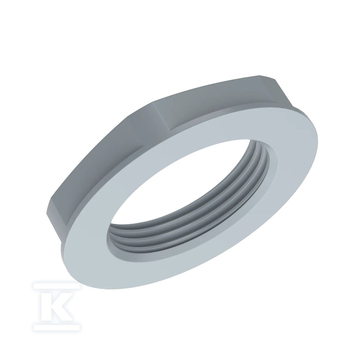 Контргайка виготовлена з високоякісного поліаміду (PA), який характеризується хорошою хімічною та механічною стійкістю. Армування скловолокном додатково збільшує її міцність і жорсткість. Колір RAL 7001 (сірий) забезпечує естетичний вигляд та хорошу видимість в різних умовах освітлення. Захист поверхні є суворим, що означає відсутність додаткових захисних покриттів – матеріал сам по собі забезпечує відповідну довговічність.