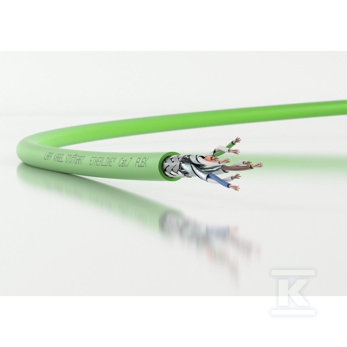 Кабель ETHERLINE® Cat.7 FLEX вирізняється конструкцією, адаптованою до специфічних потреб сучасних мереж. Він використовує мідні жили перерізом 26 AWG, що забезпечує хорошу провідність та гнучкість. Чотири пари проводів екрановані алюмінієвою фольгою, а весь провід додатково захищений мідним обплетенням (S/FTP), мінімізуючи вплив зовнішніх перешкод. Зовнішня оболонка виготовлена з поліуретану (PUR) характеризується високою стійкістю до мінеральних олій, хімікатів та ультрафіолетового випромінювання, що дозволяє використовувати його у складних умовах навколишнього середовища. Додатково, PUR забезпечує довговічність та гнучкість кабелю навіть за низьких температур – до -40°C. Зменшений переріз проводу у версії „FLEX” полегшує встановлення в місцях з обмеженим простором.