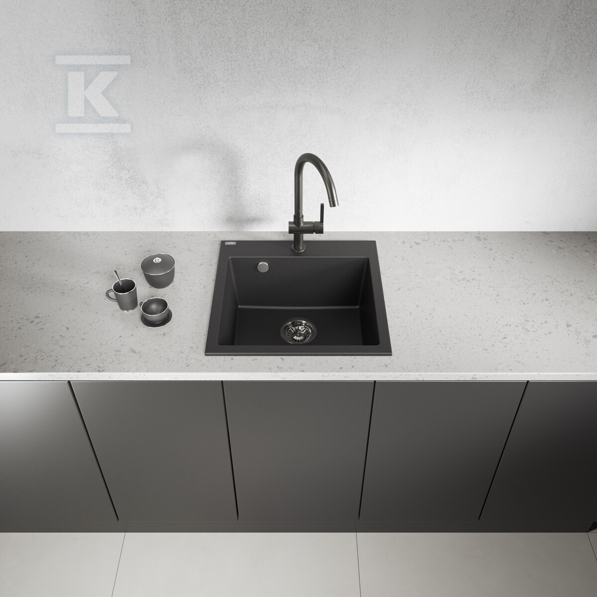 Гранітна мийка ALENA однокамерна 49x49cm з сифоном SBA_710T