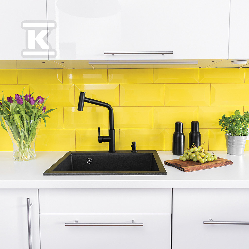 Мийка була розроблена та виготовлена в Польщі компанією Laveo, що гарантує високу якість виконання та увагу до деталей. Гладка поверхня граніту стійка до знебарвлення, подряпин та високої температури – навіть до 250°C. Завдяки цьому ви можете без побоювань мити в ній гарячий посуд чи каструлі. Глибока камера (20 см) мінімізує ризик розбризкування води під час миття великого посуду, такого як листи для випічки або великі форми.