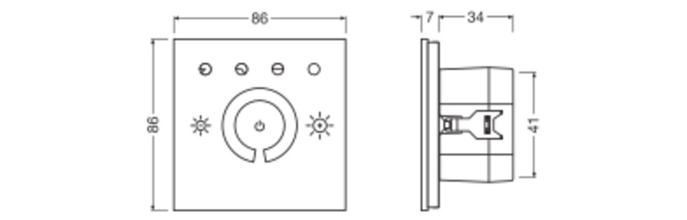 Пристрій характеризується компактними розмірами – 86 мм ширини, 41 мм глибини та 41 мм висоти – що полегшує монтаж навіть у обмеженому просторі. Докладна монтажна пластина забезпечує стабільність та безпеку встановлення. Споживання потужності на рівні 2.7 Вт мінімізує споживання енергії, а ступінь захисту IP20 гарантує захист від дотику сторонніми тілами. Термін служби L90/B10 @ 25 °C, що становить 50000 годин, забезпечує довготривалу та надійну роботу пристрою. Гарантія виробника становить аж 5 років, що свідчить про високу якість продукту та довіру до його надійності.