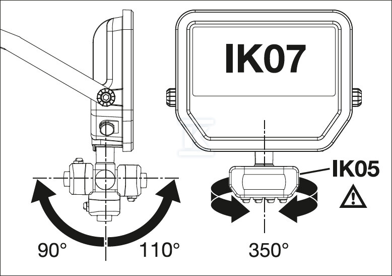 Конструкція прожектора розроблена з урахуванням тривалого використання у складних атмосферних умовах. Корпус, виготовлений з алюмінію та пластику, у поєднанні з загартованим склом, гарантує стійкість до ударів (IK05) та дії зовнішніх факторів (IP65). Відвідний клапан оптимізує обмін повітрям, запобігаючи конденсації вологи всередині освітлювального приладу. Заводський гнучкий провід довжиною 1 метр (H05RN-F, 3 x 1,0 mm²) полегшує монтаж.