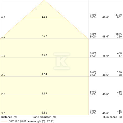 Корпус, виготовлений з алюмінію та пластику, забезпечує стійкість до атмосферних впливів і механічних пошкоджень (IK05). Загартоване матове скло гарантує рівномірне розсіювання світла. Заводський встановлений провід довжиною 1 метр (H05RN-F, 3x1.0 mm²) полегшує монтаж. Прожектор має клас захисту I та відповідає нормі EN 60598-2-24 щодо пожежної безпеки. Завдяки високоякісним компонентам і міцному виконанню, продукт охоплюється 5-річною гарантією.