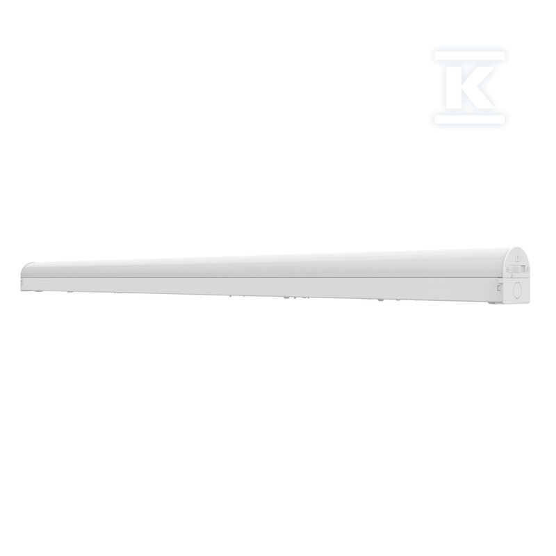 Світильник пропонує можливість вибору колірної температури – 4000K (нейтральний білий) або 6500K (холодний білий) – завдяки функції Multi Select. Кут розсіювання світла, що становить 110°, забезпечує широкий діапазон освітлення. Клас захисту I та клас IK08 (стійкість до ударів) гарантують безпеку використання в різних умовах. Світильник має сертифікати CE, CB, ERP, UKCA та EAC, що підтверджує його відповідність європейським нормам безпеки та якості. Виконаний з полікарбонату (PC) він стійкий до механічних пошкоджень та зовнішніх факторів. Номінальна потужність може становити 36 Вт або 18 Вт, номінальна напруга – 220…240 В, а колірну температуру можна встановити на 4000 K або 6500 K. Світловий потік залежно від налаштувань становить 5400 лм або 2750 лм, а кут розсіювання світла – 110°. Розміри світильника: довжина 1248.8 мм, висота 70 мм та ширина 64 мм.