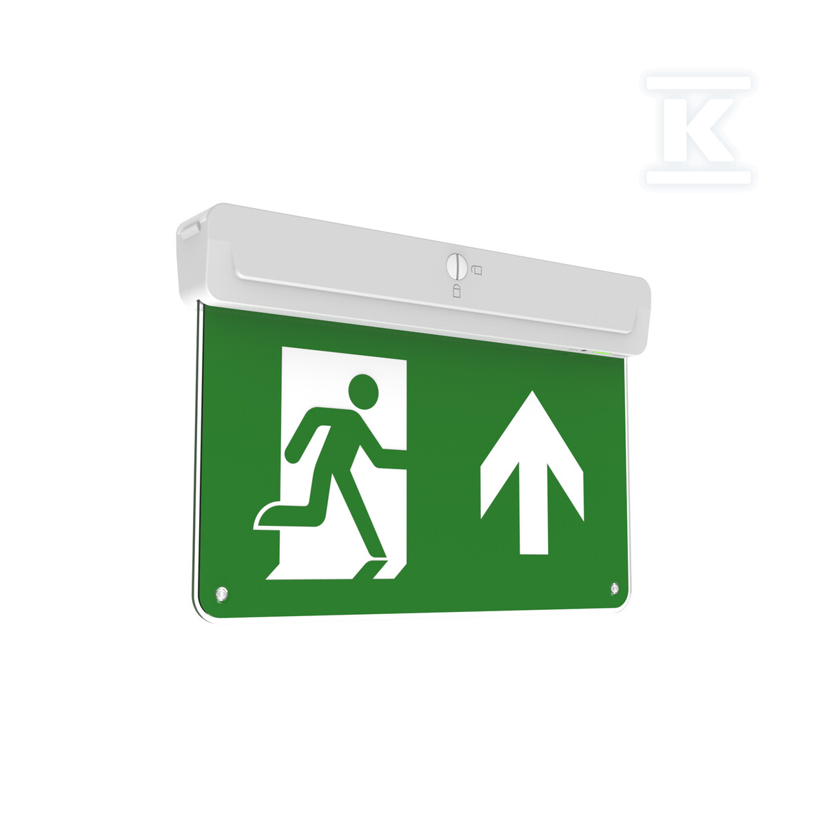 Світильник працює при напрузі 220-240 В і випромінює світло кольору 5700K, близьке до природного денного світла. Завдяки цьому знак евакуації добре видно в різних умовах освітлення. Світловий потік на рівні 20 лм гарантує достатню яскравість, а клас захисту II забезпечує безпеку використання. Її компактні розміри (313 x 212 x 42 мм) дозволяють дискретно встановити її в різних просторах. Ступінь захисту IP20 означає, що світильник захищений від дотику, що важливо в громадських місцях.