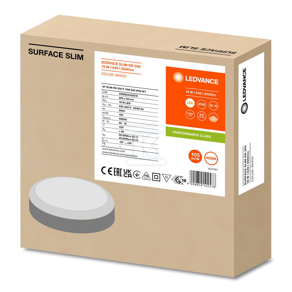 Світлодіодний накладний світильник LED SURFACE SLIM RD 200 P 19W 840 IP65 4099854102578