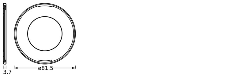 Кільце має діаметр 81,5 мм та висоту 3,7 мм (разом з циліндром освітлювального приладу). Його невеликі розміри полегшують монтаж навіть у важкодоступних місцях. Матеріал виготовлення – алюміній, що впливає на його легкість та стійкість до зовнішніх факторів.